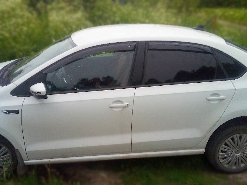 Отзывы на Дефлекторы боковых окон для Volkswagen Polo V седан (Фольксваген Поло 5) 2010-2020, ветровики на двери автомобиля, Cobra Tuning