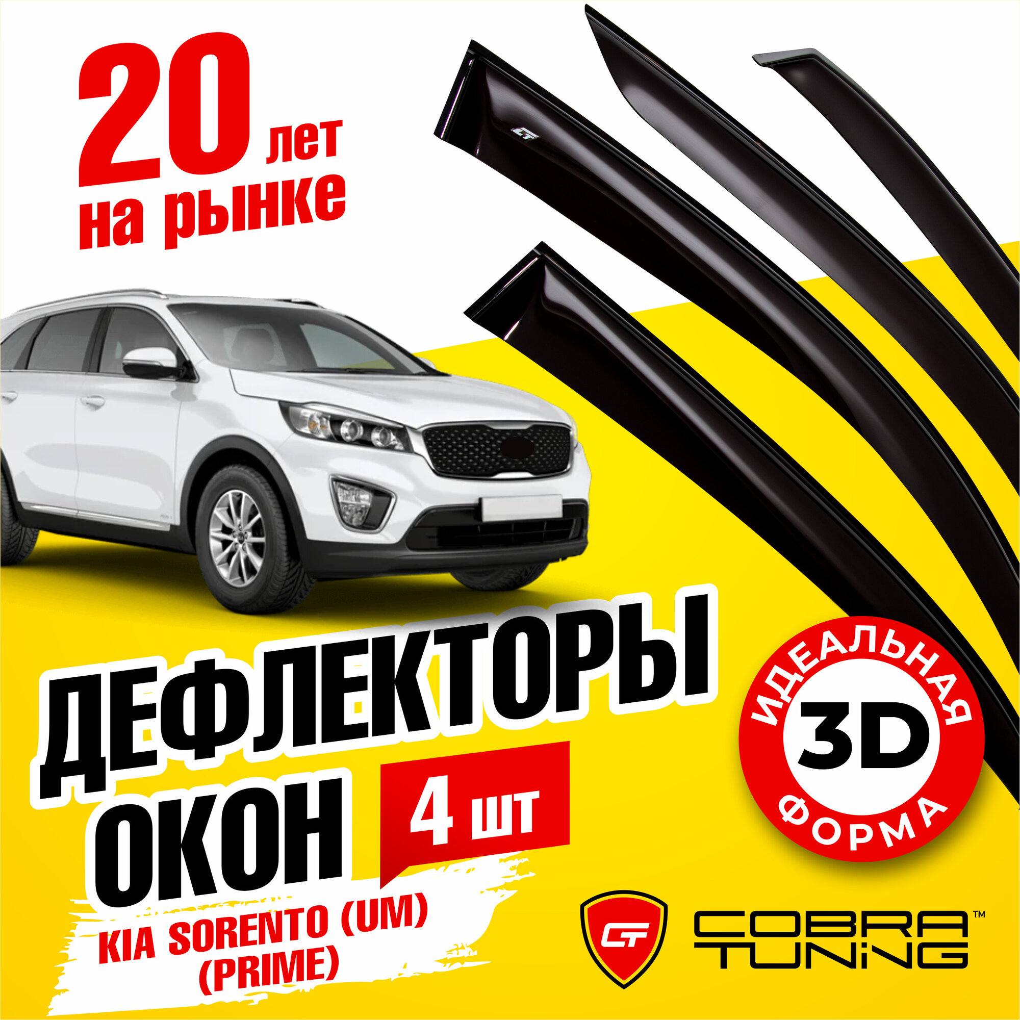Отзывы на Дефлекторы боковых окон для Kia Sorento (Киа Соренто) (UM) 2014-2020 (Prime), ветровики на двери автомобиля, Cobra Tuning