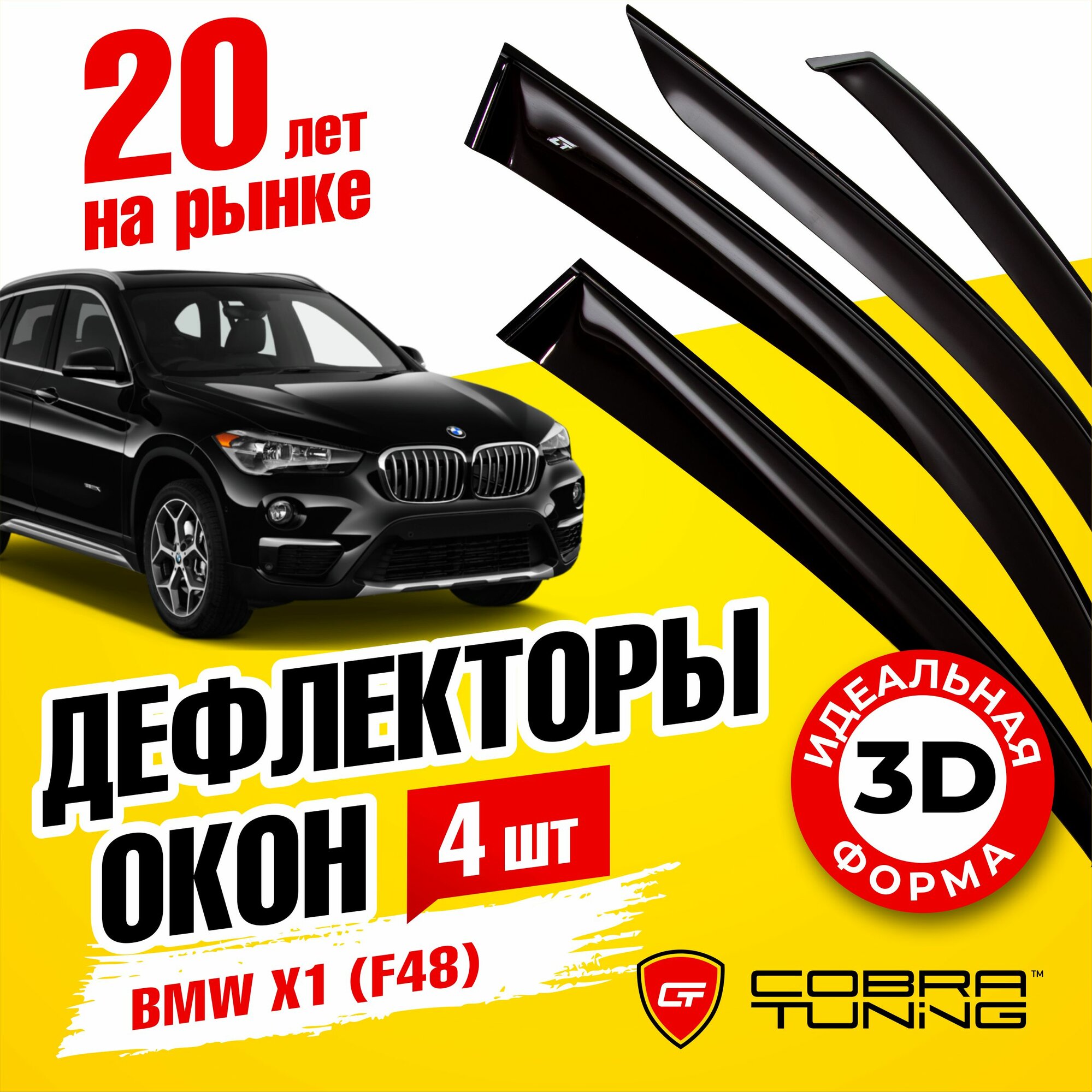 10 цен на Дефлекторы боковых окон для BMW (БМВ) X1 (F48) 2015-2022, ветровики на двери автомобиля, Cobra Tuning