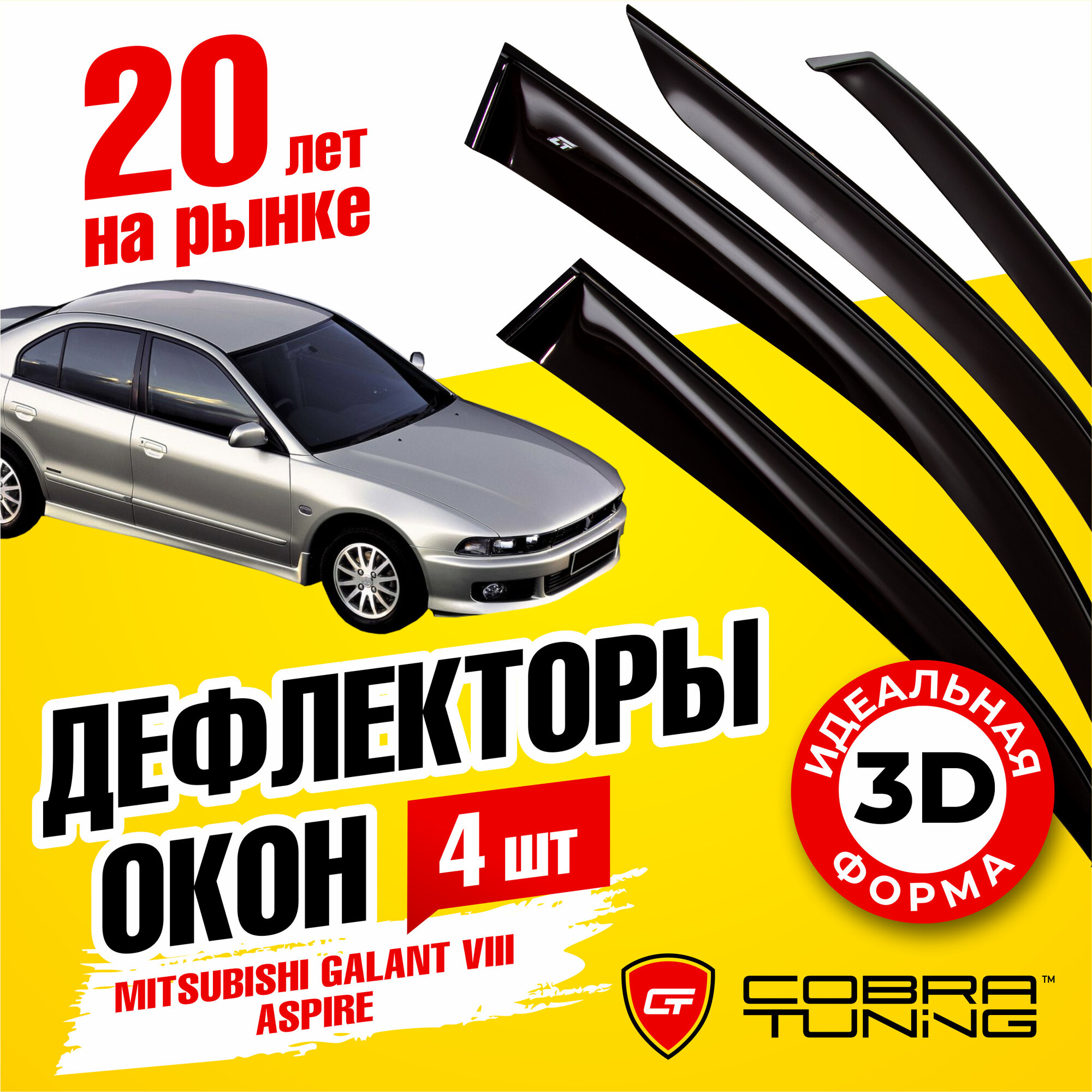 10 цен на Дефлекторы боковых окон для Mitsubishi Galant (Митсубиси Галант) VIII, Aspire (Аспира), седан 1996-2003, ветровики на двери автомобиля, Cobra Tuning