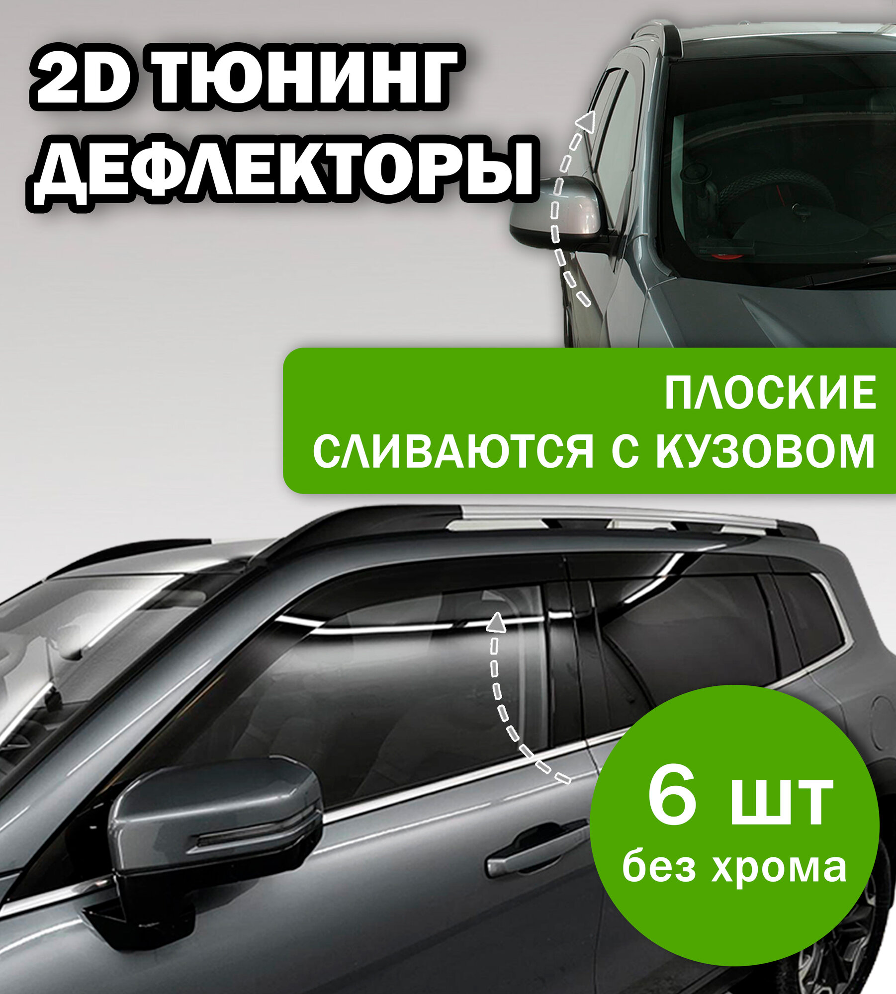 Плоские тюнинг дефлекторы / 2d дефлекторы окон Haval Jolion (2021-н. в) Ветровики на Хавал Джулион. Комплект 6 шт.