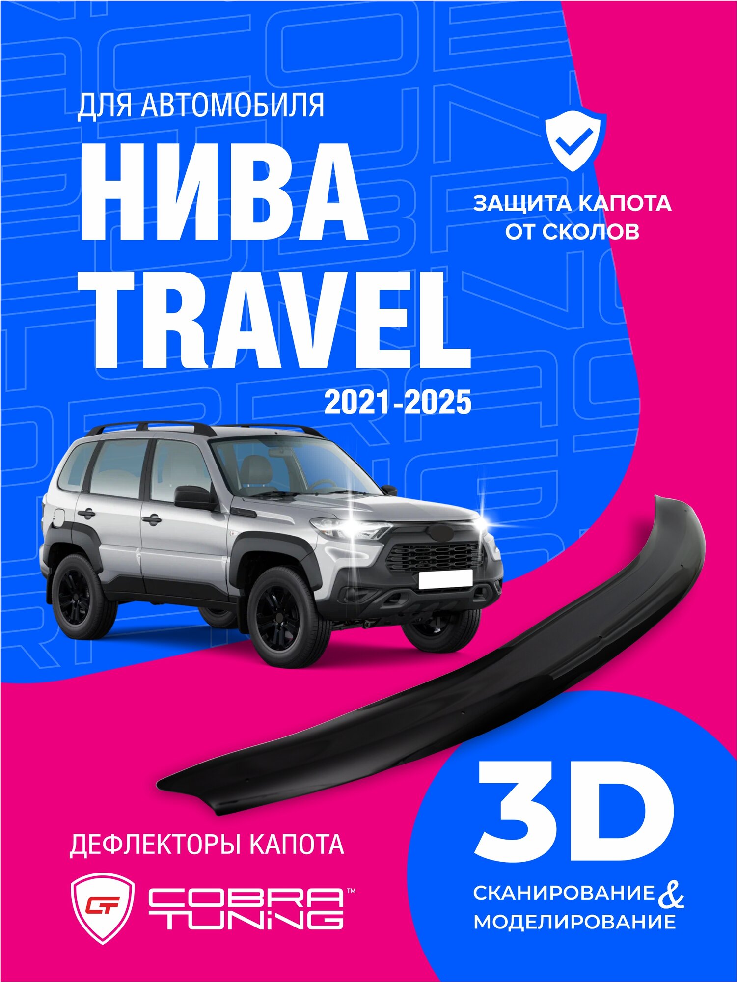 Дефлектор капота для автомобиля Лада (ВАЗ) Нива, Тревел (Lada Niva, Travel) 2020, 2021, 2022, 2023, 2024 (мухобойка) CobraTuning информация: