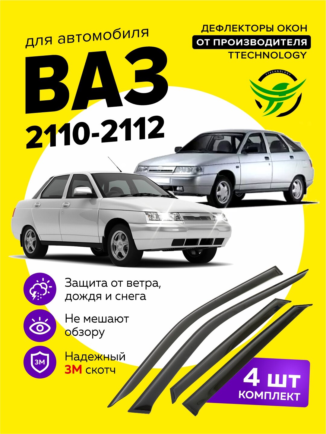 Дефлекторы боковых окон для автомобиля Лада, Ваз (Lada, Vaz) 2110, 2112, ветровики на двери автомобиля, ТТ информация: