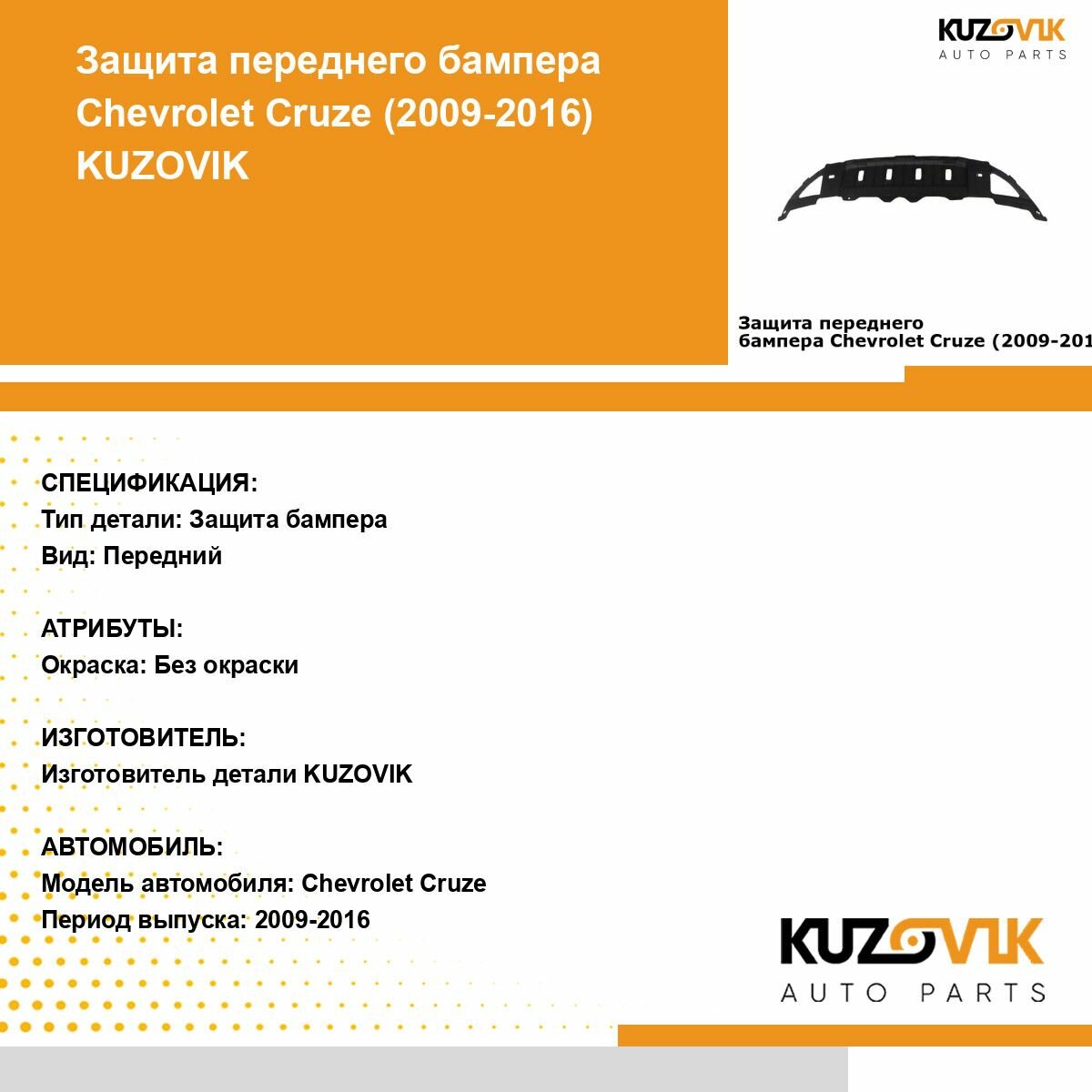 10 цен на Защита переднего бампера нижняя пыльник для Шевроле Круз Chevrolet Cruze (2009-2013)