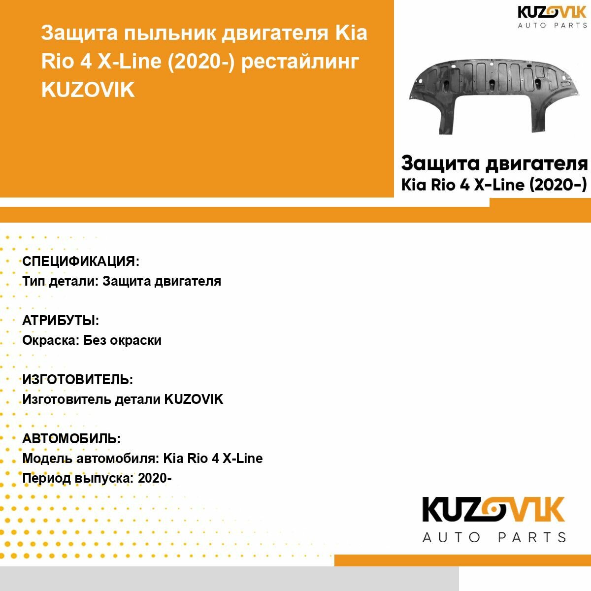 Отзывы на Защита пыльник двигателя Киа Рио Kia Rio 4 X-Line (2020-) рестайлинг