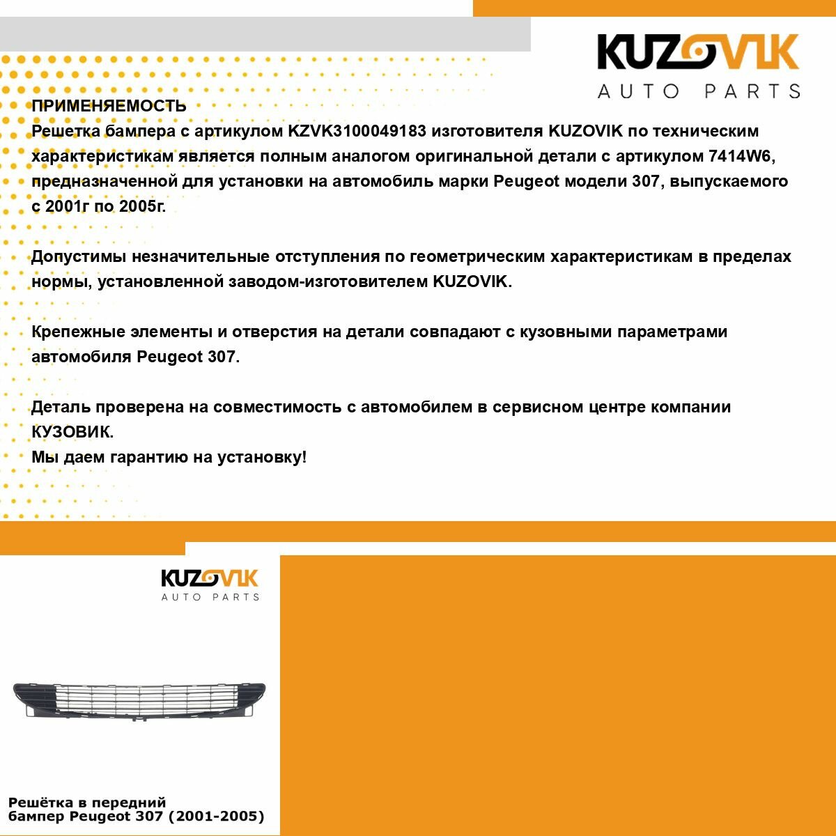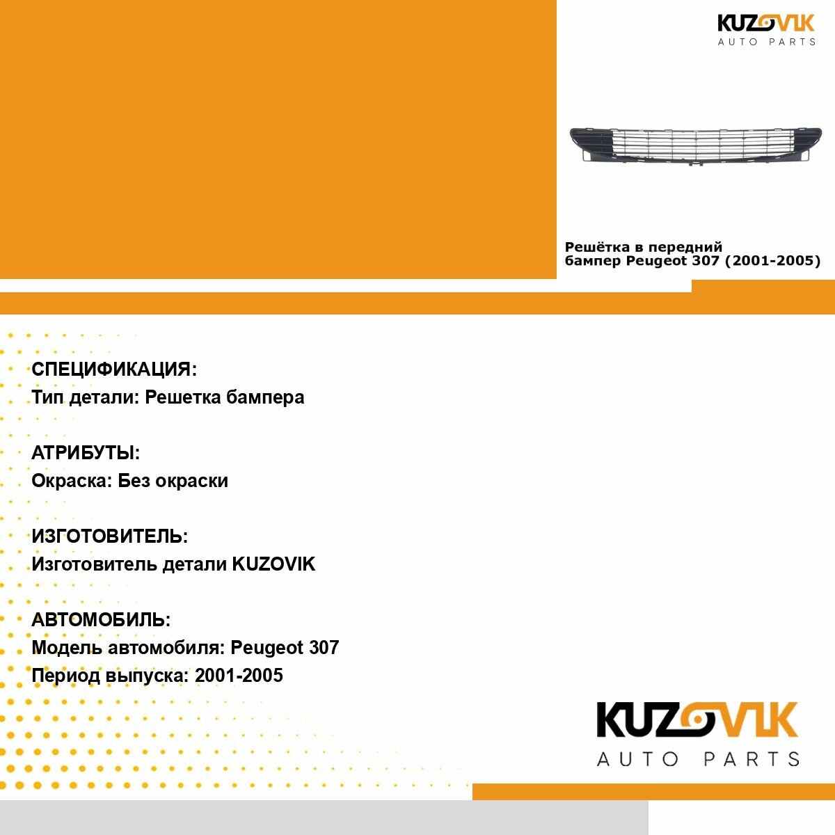 | Подробная комплектация | Решетка переднего бампера для Пежо Peugeot 307 (2001-2005) центральная нижняя, накладка |