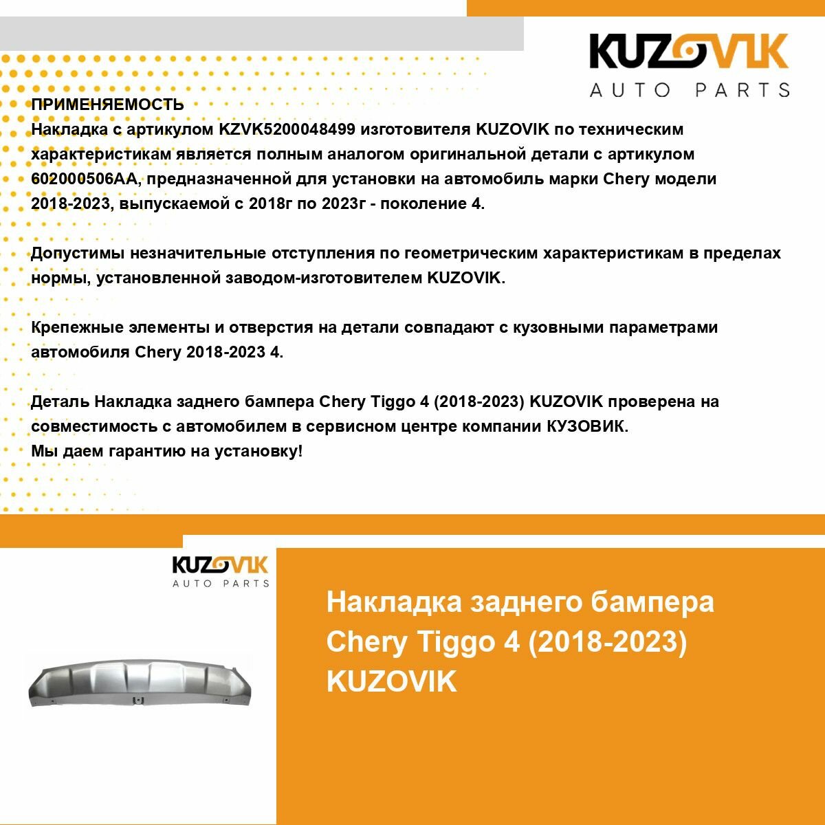 | Подробная комплектация | Молдинг накладка заднего бампера нижняя центральная Черри Тигго Chery Tiggo 4 (2018-2023), серая |