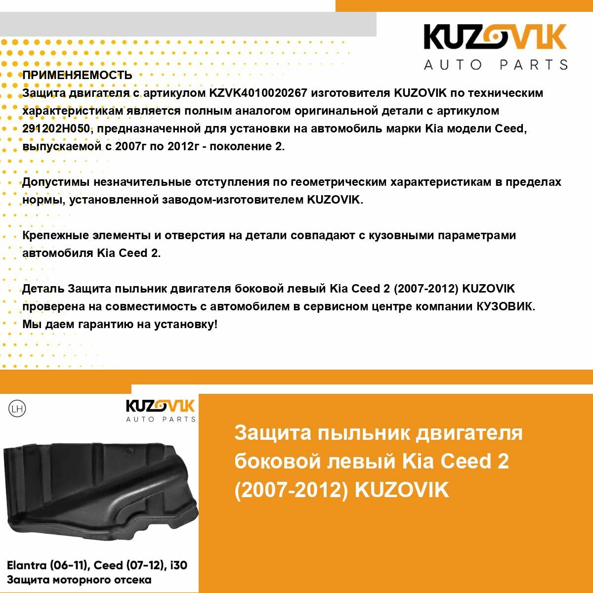 Отзывы на Пыльник защита моторного отсека двигателя левый боковой Hyundai Elantra Хендай Элантра (06-11)/ Ceed Сид (07-12)/ Cerato Церато (09-13)/ i30 (07-12)