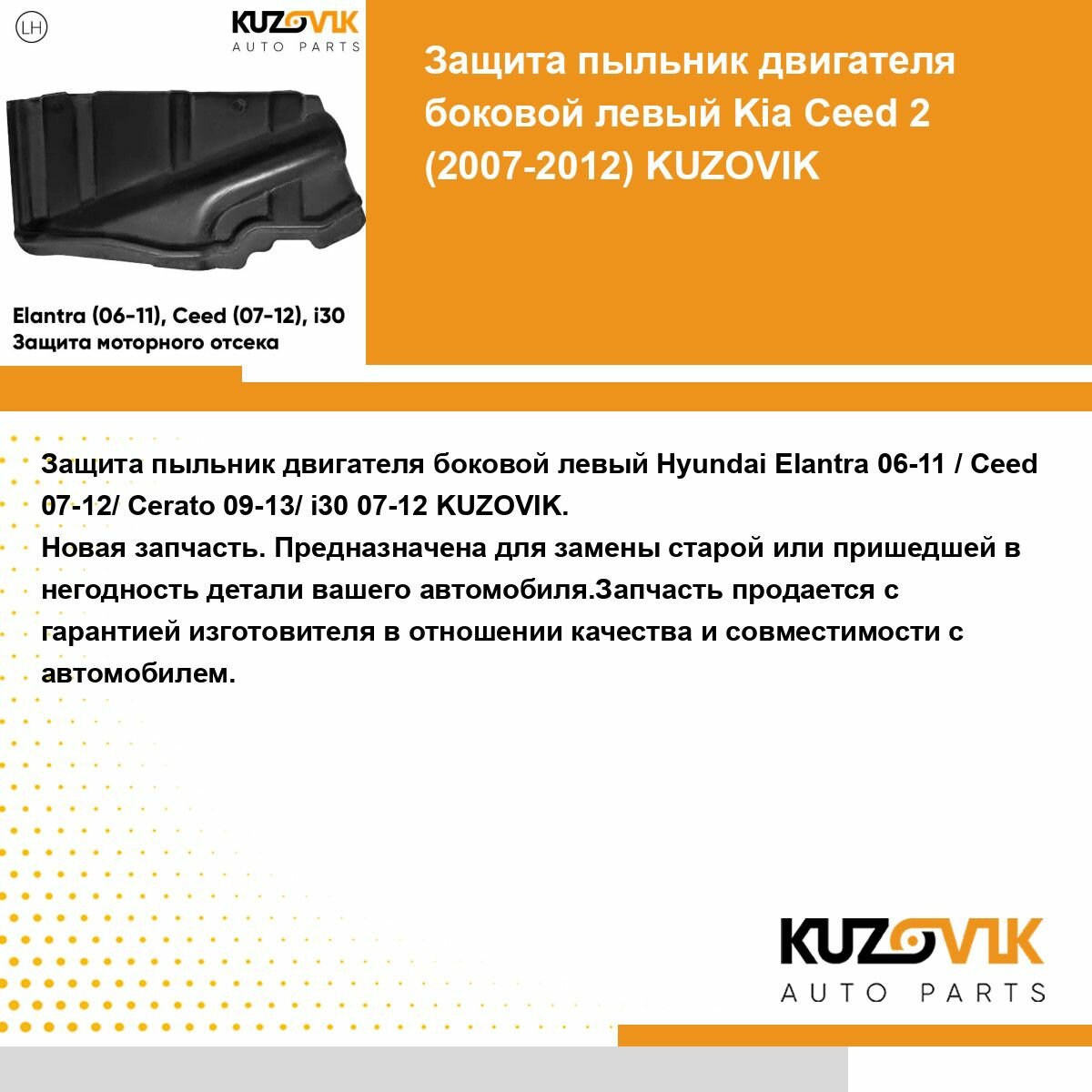 10 цен на Пыльник защита моторного отсека двигателя левый боковой Hyundai Elantra Хендай Элантра (06-11)/ Ceed Сид (07-12)/ Cerato Церато (09-13)/ i30 (07-12)