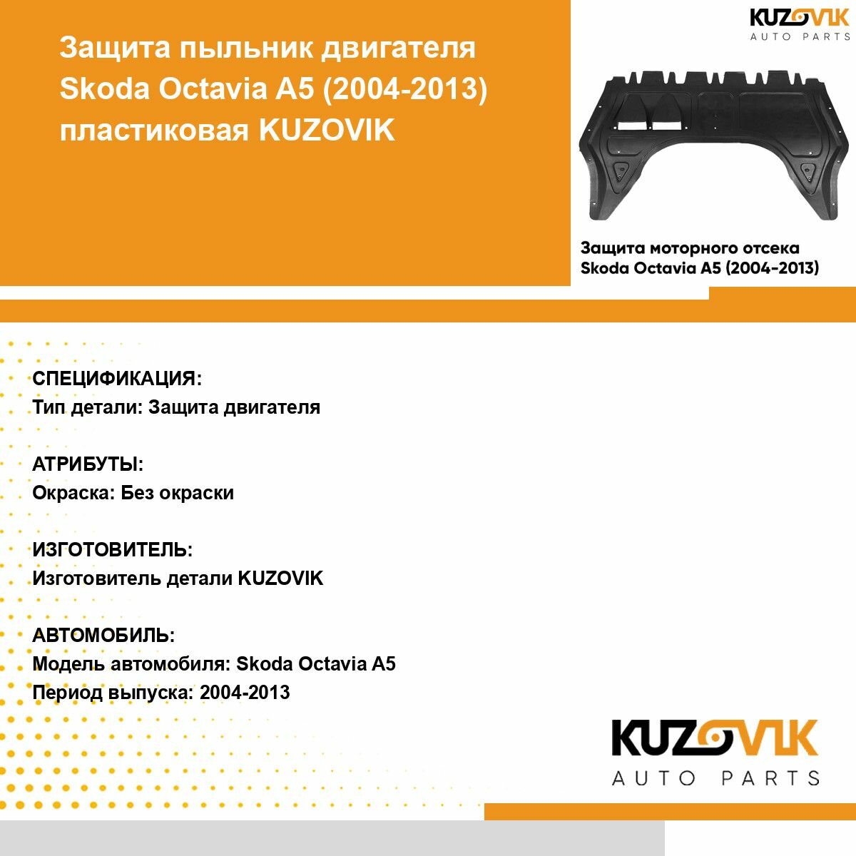 Пыльник защита двигателя Skoda Octavia A5 Шкода Октавия А5 (2004-2013) накладка дефлектор пластиковая информация: