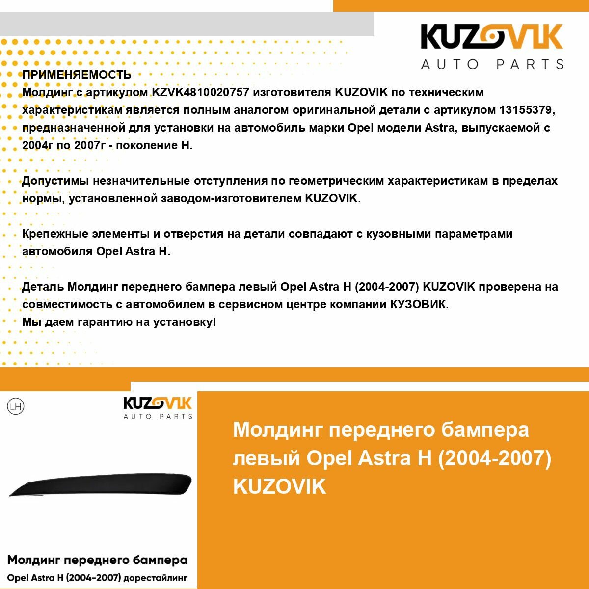 | Подробная комплектация | Молдинг переднего бампера Опель Астра Opel Astra H (2004-2007) дорестайлинг левый |