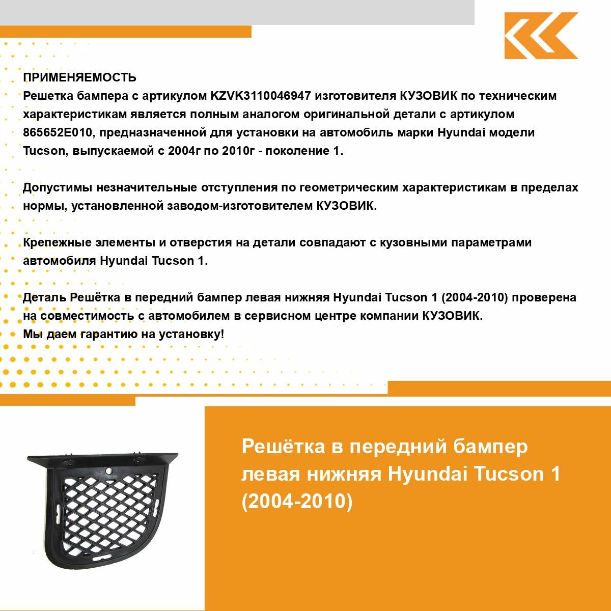 Отзывы на Решетка переднего бампера для Хендай Туссан Hyundai Tucson 1 (2004-2010) нижняя левая