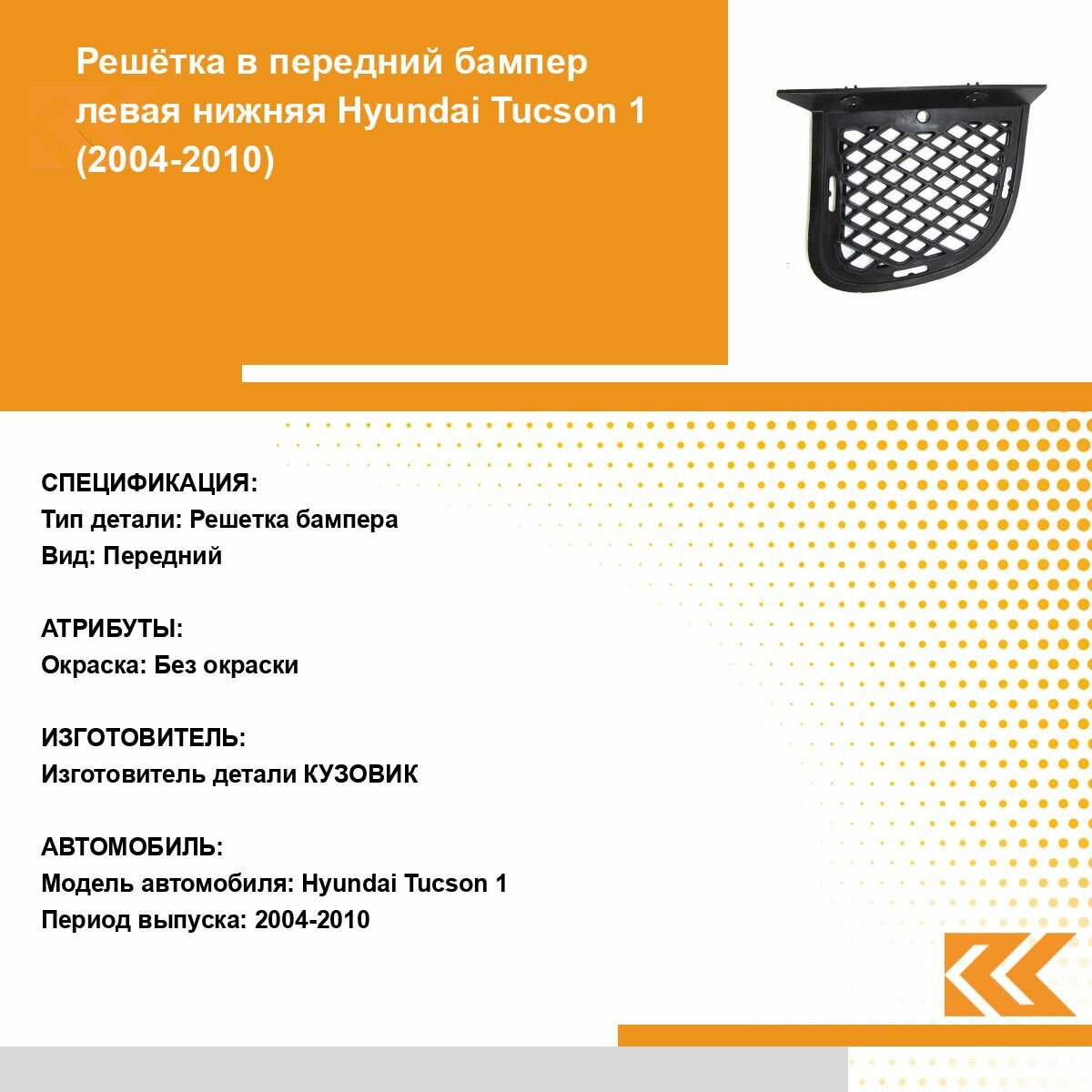 Решетка переднего бампера для Хендай Туссан Hyundai Tucson 1 (2004-2010) нижняя левая информация: