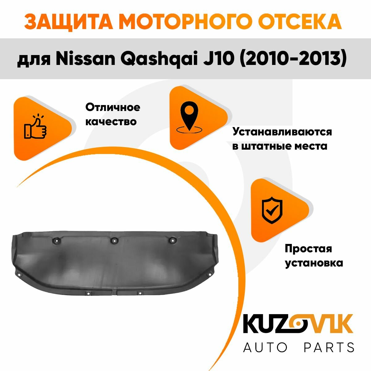 Отзывы на Защита пыльник двигателя, моторного отсека для Ниссан Кашкай Nissan Qashqai J10 (2010-2013) пластик, новая, заводское качество