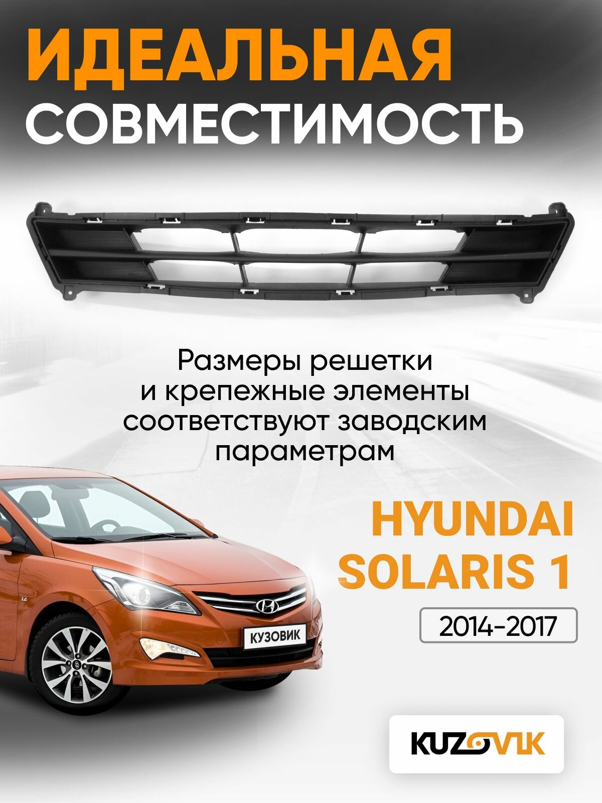 Отзывы на Решетка бампера для Хендай Солярис 1 Hyundai Solaris (2014-2017) рестайлинг нижняя новая заводское качество