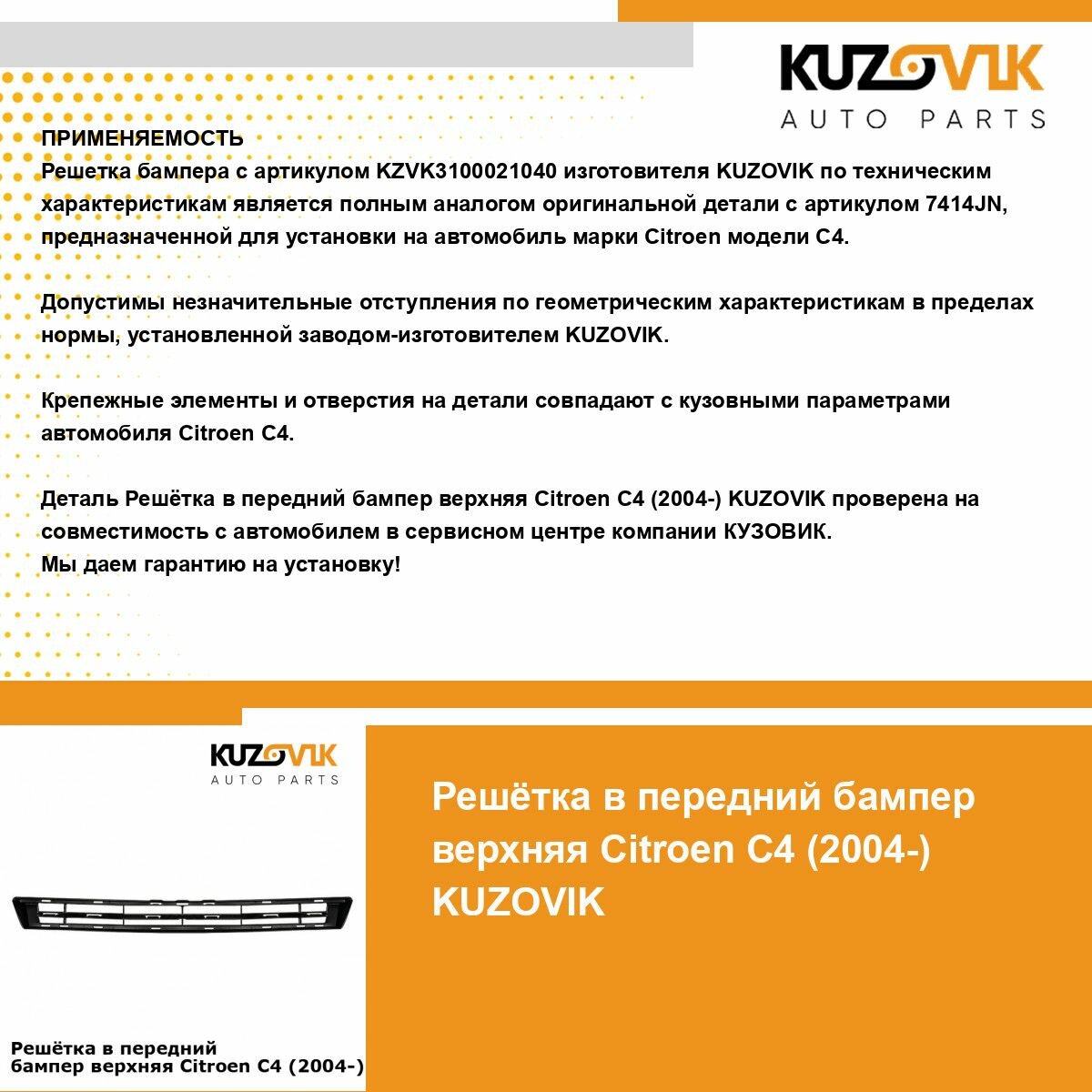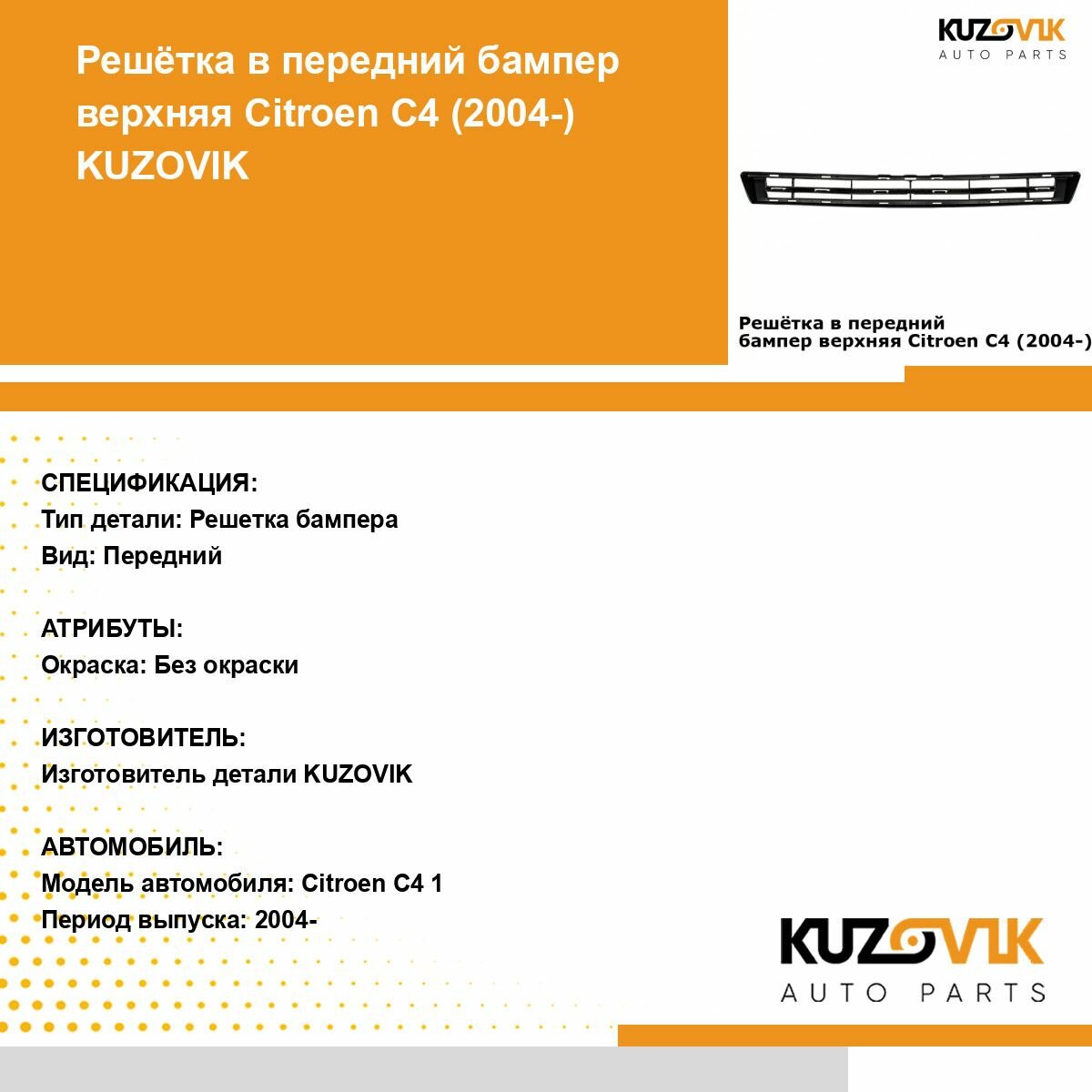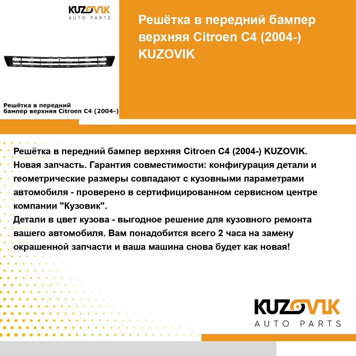 | Подробная комплектация | Решетка переднего бампера Ситроен Citroen C4 1 (2004-2008) верхняя накладка |