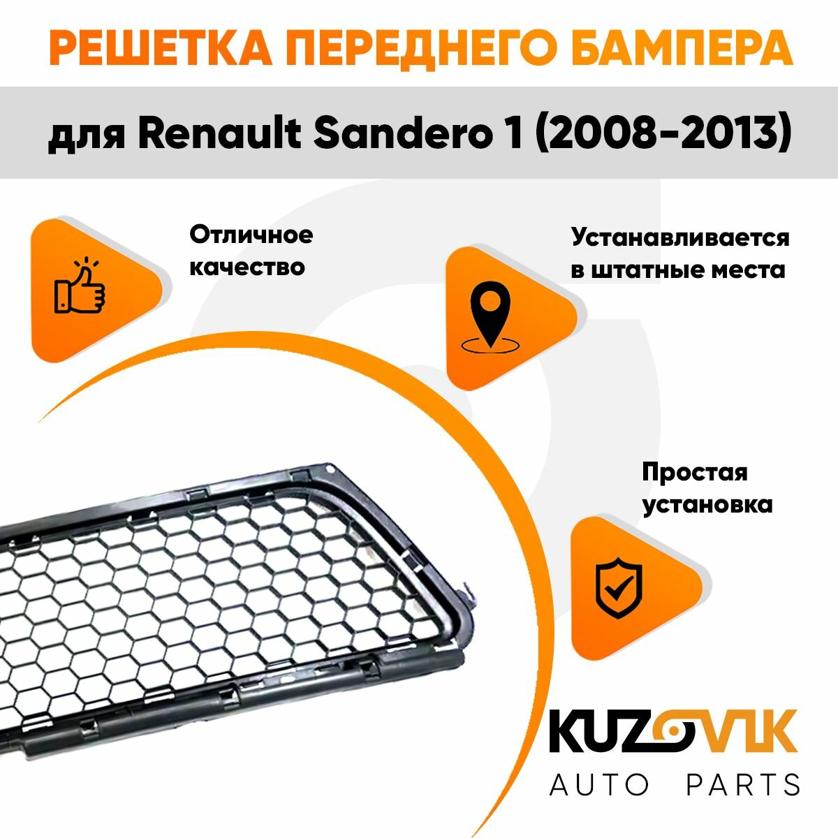 Решетка переднего бампера для Рено Сандеро Renault Sandero 1 (2008-2013) центральная нижняя информация: