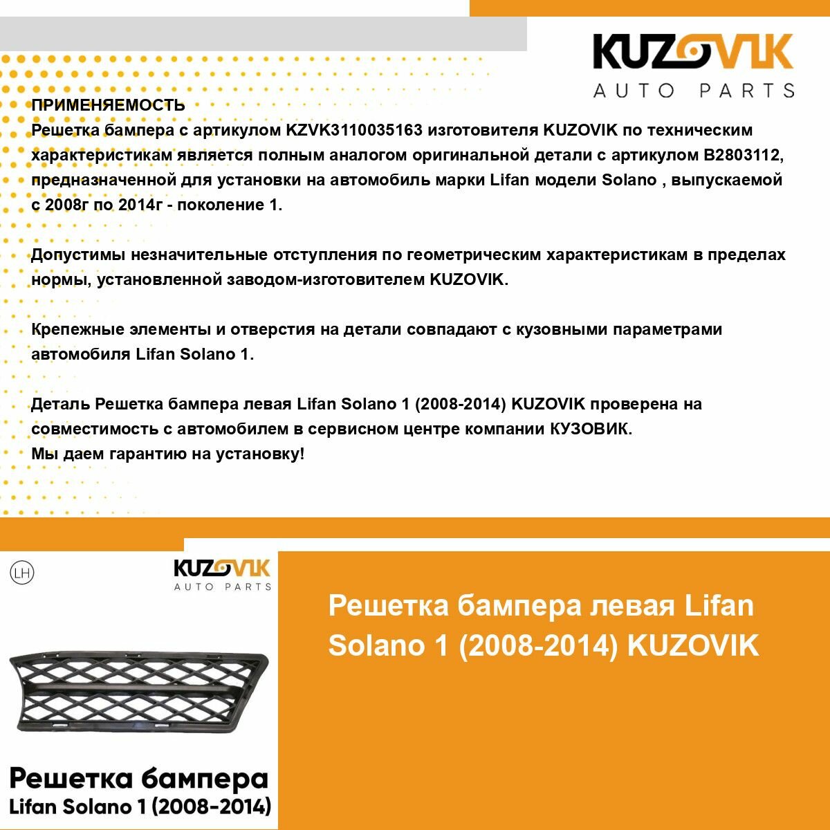 Отзывы на Решетка переднего бампера Лифан Солано Lifan Solano 1 (2008-2014) левая