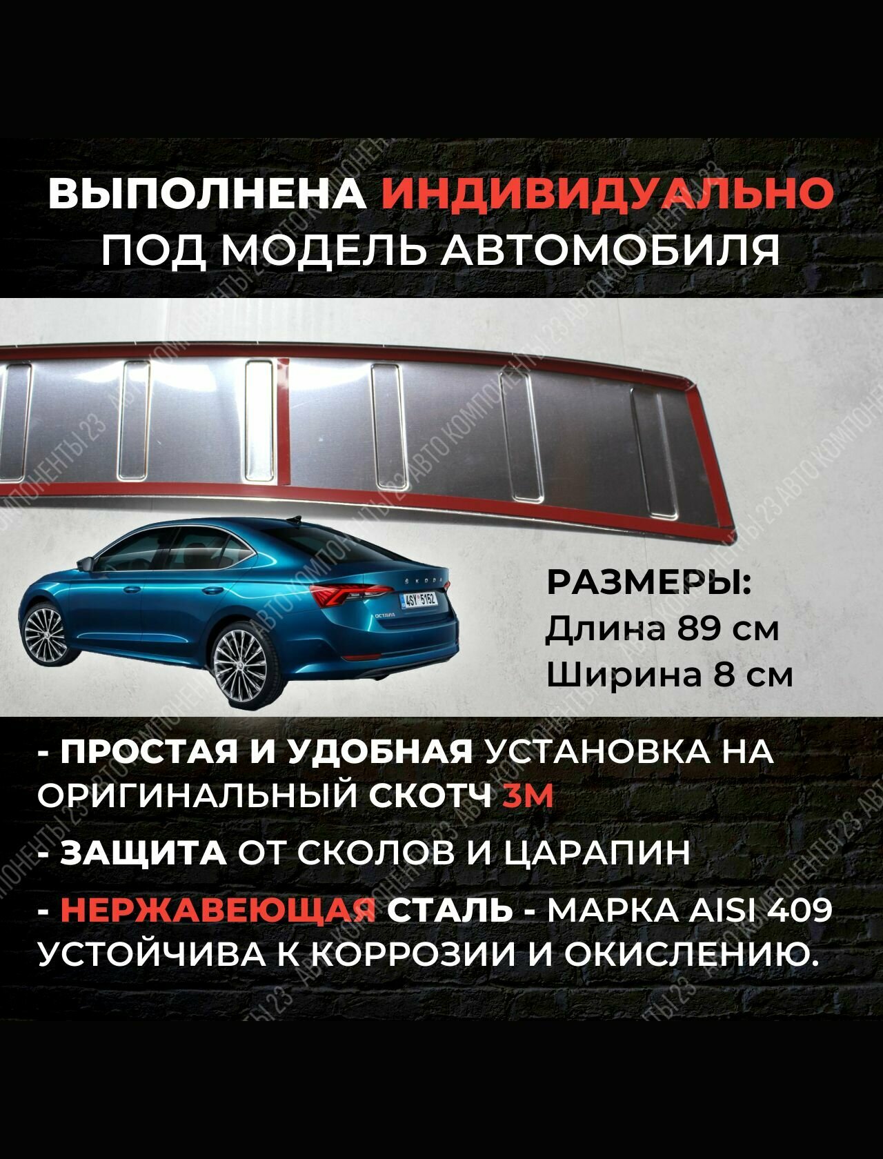 | Дополнительная информация | накладка на задний бампер из нержавеющей стали это стильный и функциональный аксессуар для вашего автомобиля, она предотвращает царапины, сколы и другие повреждения бампер, установка проста, без специальных инструментов, нержавеющая сталь обеспечивает надежную защиту от коррозии, накладка добавляет элегантности и стиля задней части автомобиля, придавая ему уникальный вид |