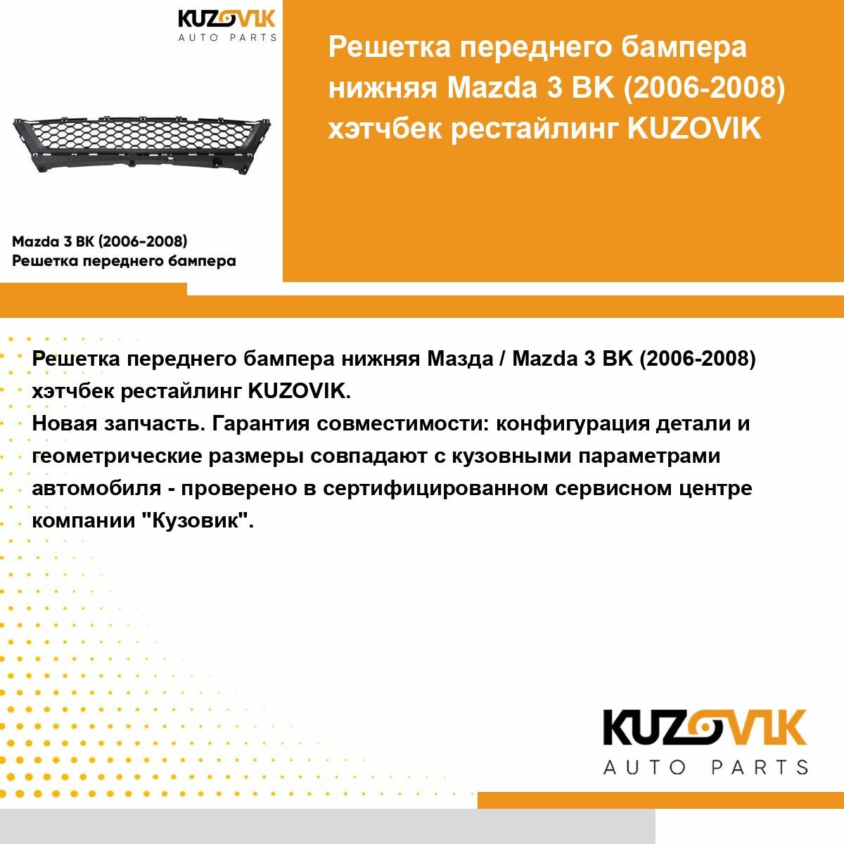 Отзывы на Решетка переднего бампера Mazda 3 BK Мазда 3 ВК (2006-2008) хэтчбек рестайлинг нижняя