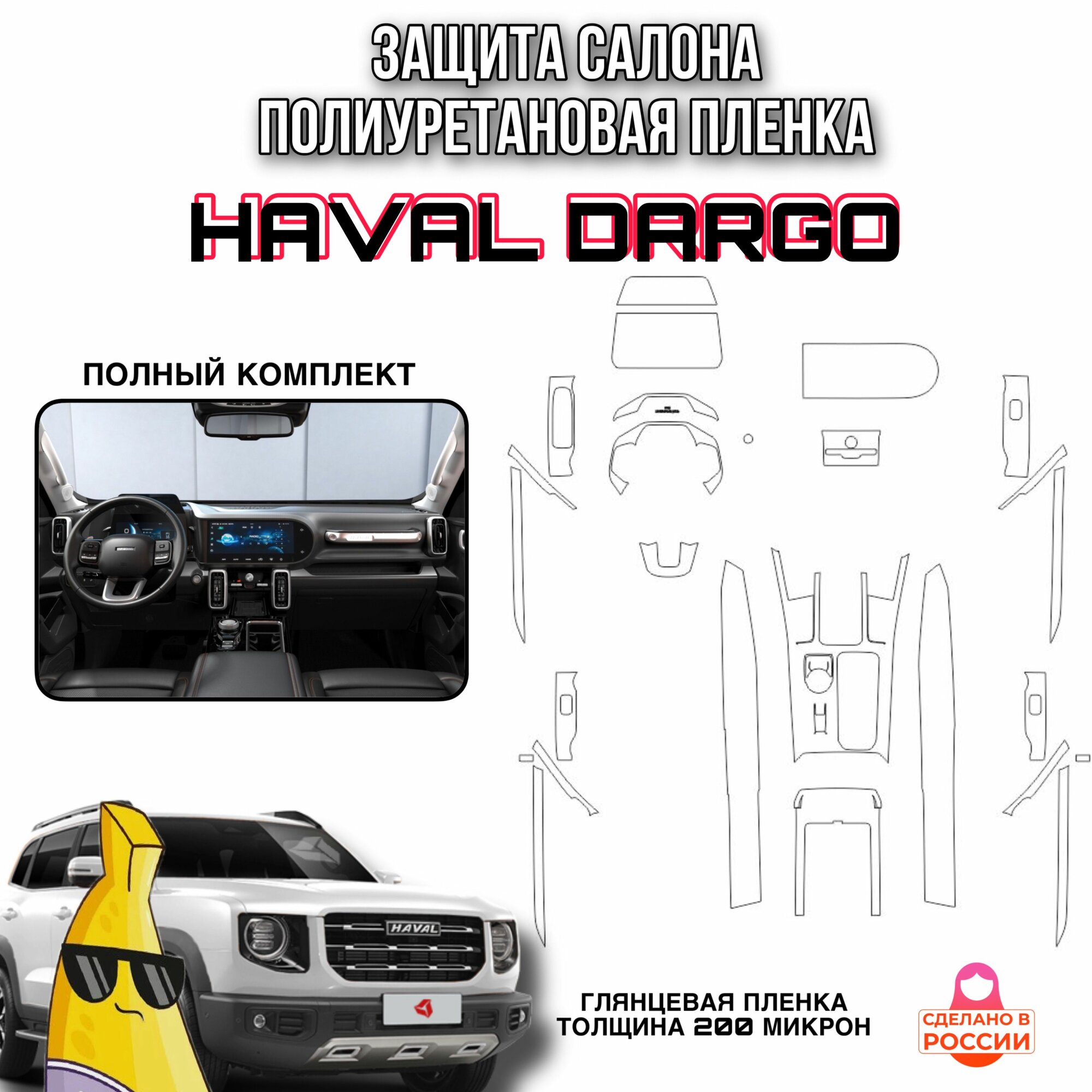 Защита салона из полиуретановой пленки на HAVAL DARGO полный комплект информация: