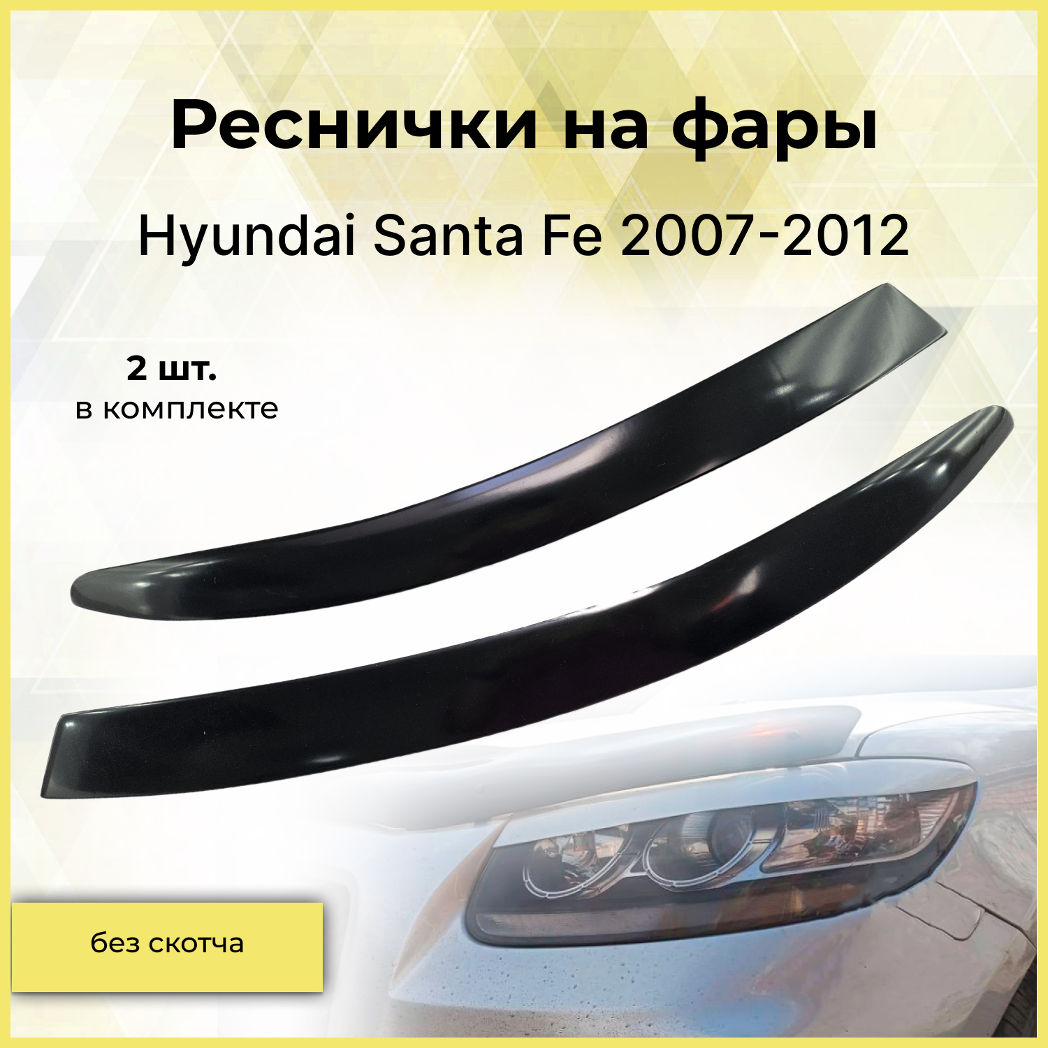10 цен на Реснички на фары / Накладки на передние фары для Hyundai Santa Fe (Хендай Санта Фе) 2007-2012