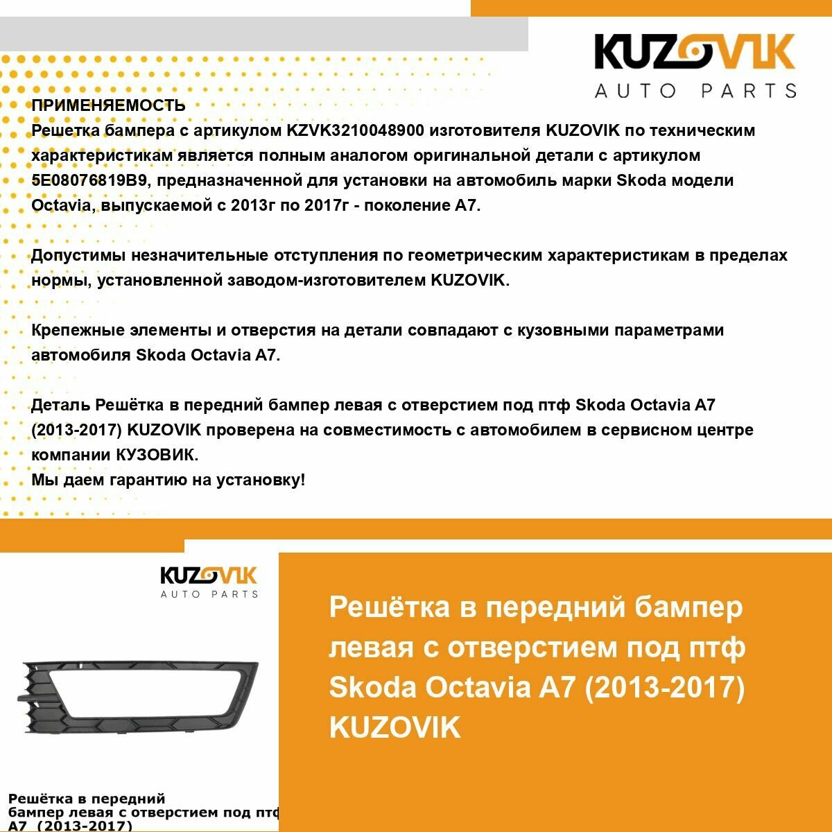 | Подробная комплектация | Рамка противотуманной фары для Шкода Октавия Skoda Octavia A7 (2013-2017) левая накладка, решётка, птф, туманка |