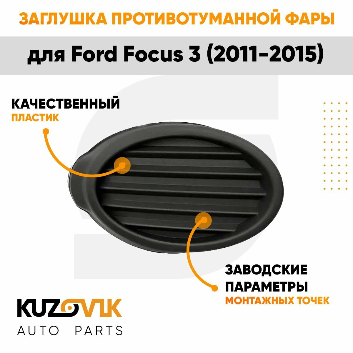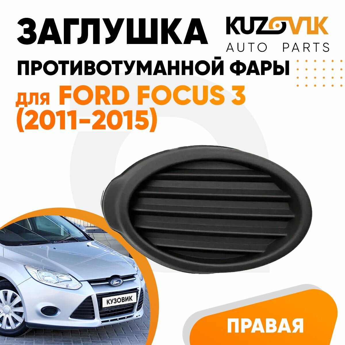 Заглушка противотуманной фары правая для Форд Фокус 3 Ford Focus 3 (2011-2015) черная рамка, накладка бампера, туманка, птф информация: