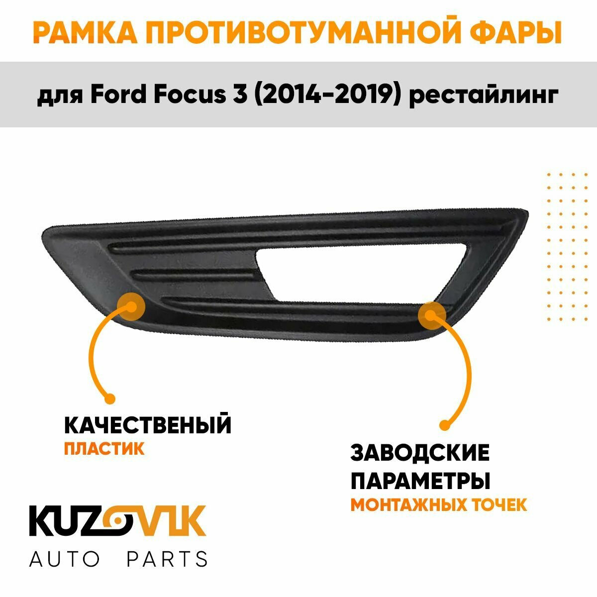 Отзывы на Рамка противотуманной фары левая для Форд Фокус 3 Ford Focus 3 (2014-2019) рестайлинг черная, накладка, птф, туманка новая качественный пластик