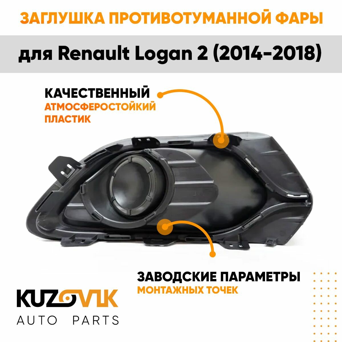 Заглушка противотуманной фары для Рено Логан Renault Logan 2 (2014-2018) без отверстия под ПТФ левая, накладка, решетка информация: