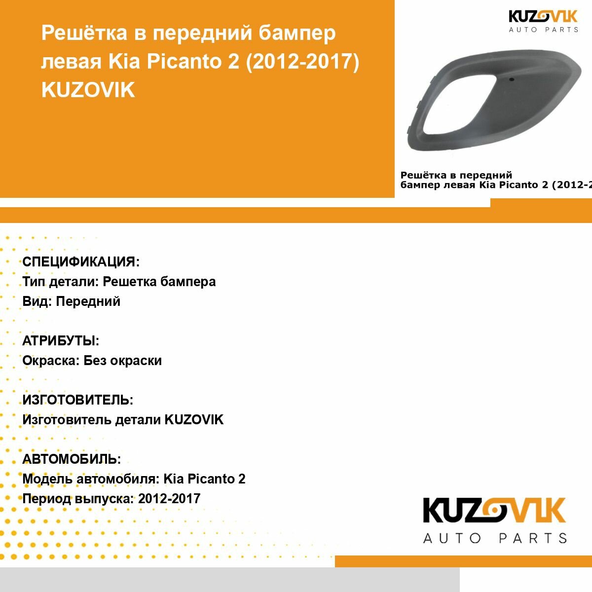 Отзывы на Рамка противотуманной фары для Киа Пиканто Kia Picanto 2 (2011-2015) дорестайлинг левая накладка, оправа, облицовка бампера, птф, туманка