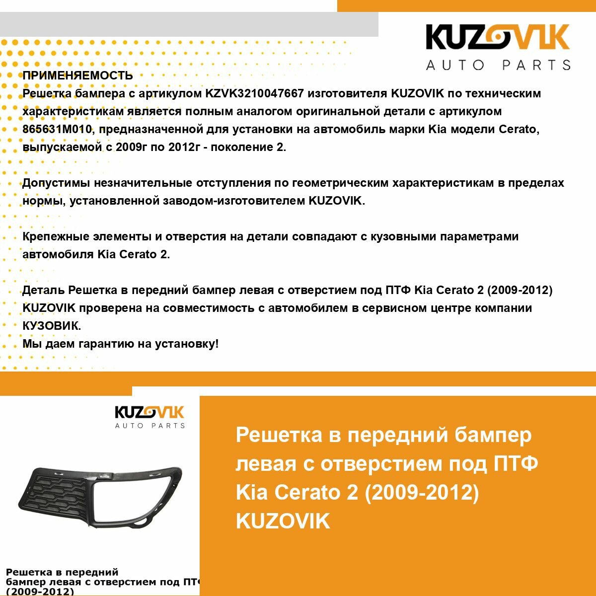 | Подробная комплектация | Рамка противотуманной фары для Киа Церато Kia Cerato 2 (2009-2013) левая накладка, оправа, облицовка бампера, птф, туманка |