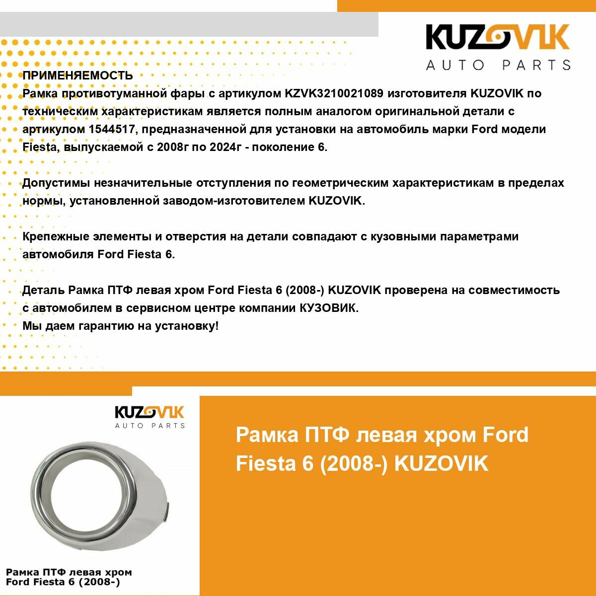 | Подробная комплектация | Рамка противотуманной фары для Форд Фиеста Ford Fiesta MK6 (2008-2012) левая хромированная решётка, накладка бампера, птф, туманка |