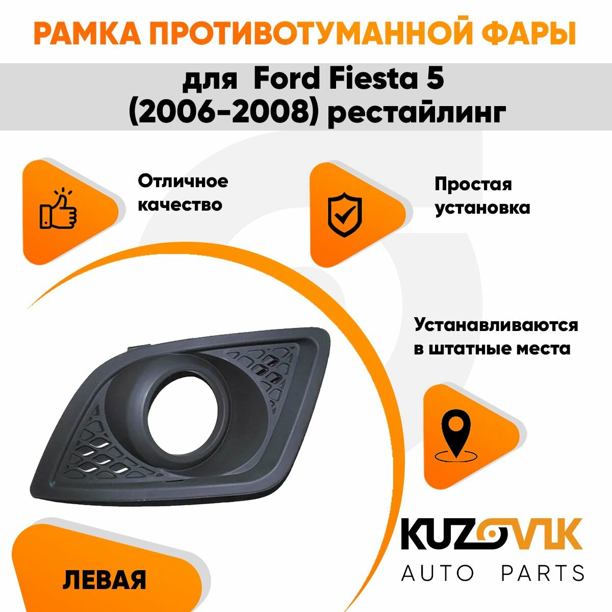 10 цен на Рамка противотуманной фары левая для Форд Фиеста 5 Ford Fiesta 5 (2006-2008) рестайлинг, решётка, накладка бампера, птф, новая, качественный пластик