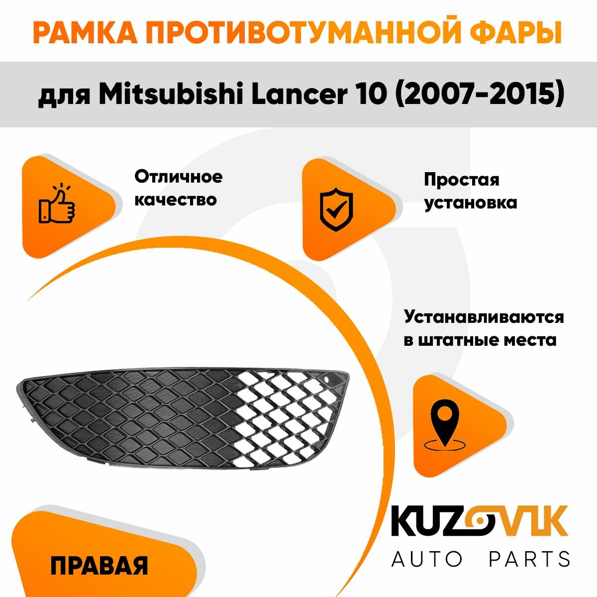 Отзывы на Рамка противотуманной фары правая для Митсубиси Лансер Mitsubishi Lancer 10 (2007-2015), накладка, решётка, птф, туманка, новая качественный пластик