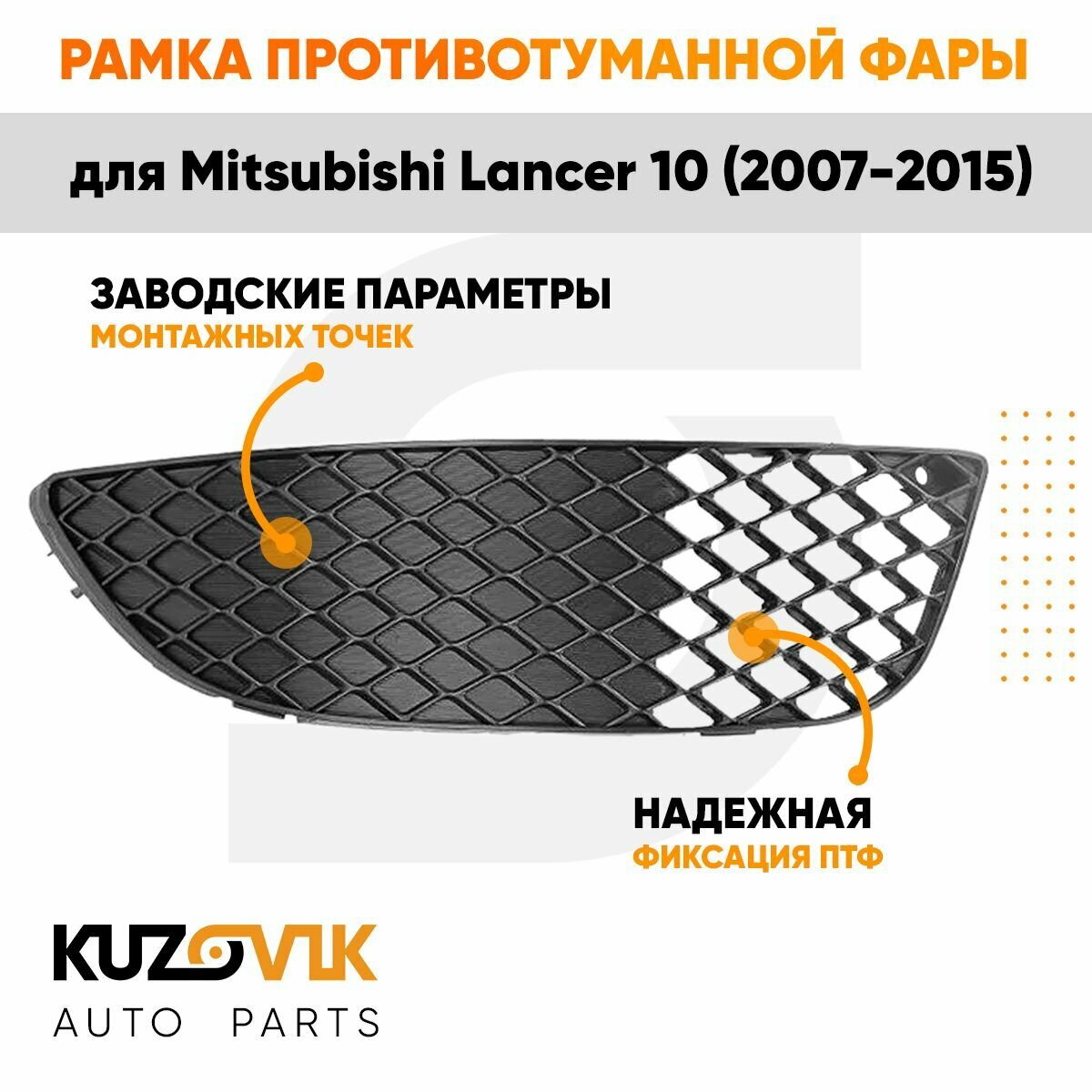 | Подробная комплектация | Рамка противотуманной фары правая для Митсубиси Лансер Mitsubishi Lancer 10 (2007-2015), накладка, решётка, птф, туманка, новая качественный пластик |