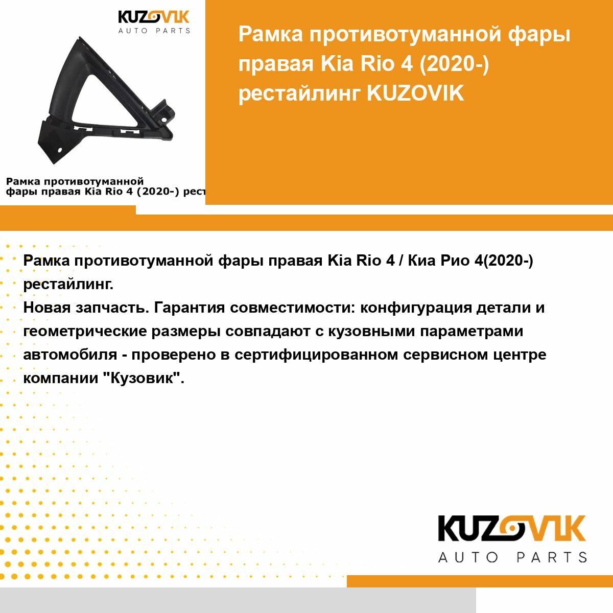 Отзывы на Рамка противотуманной фары правая Kia Rio Киа Рио 4 (2020-) рестайлинг решётка, накладка бампера