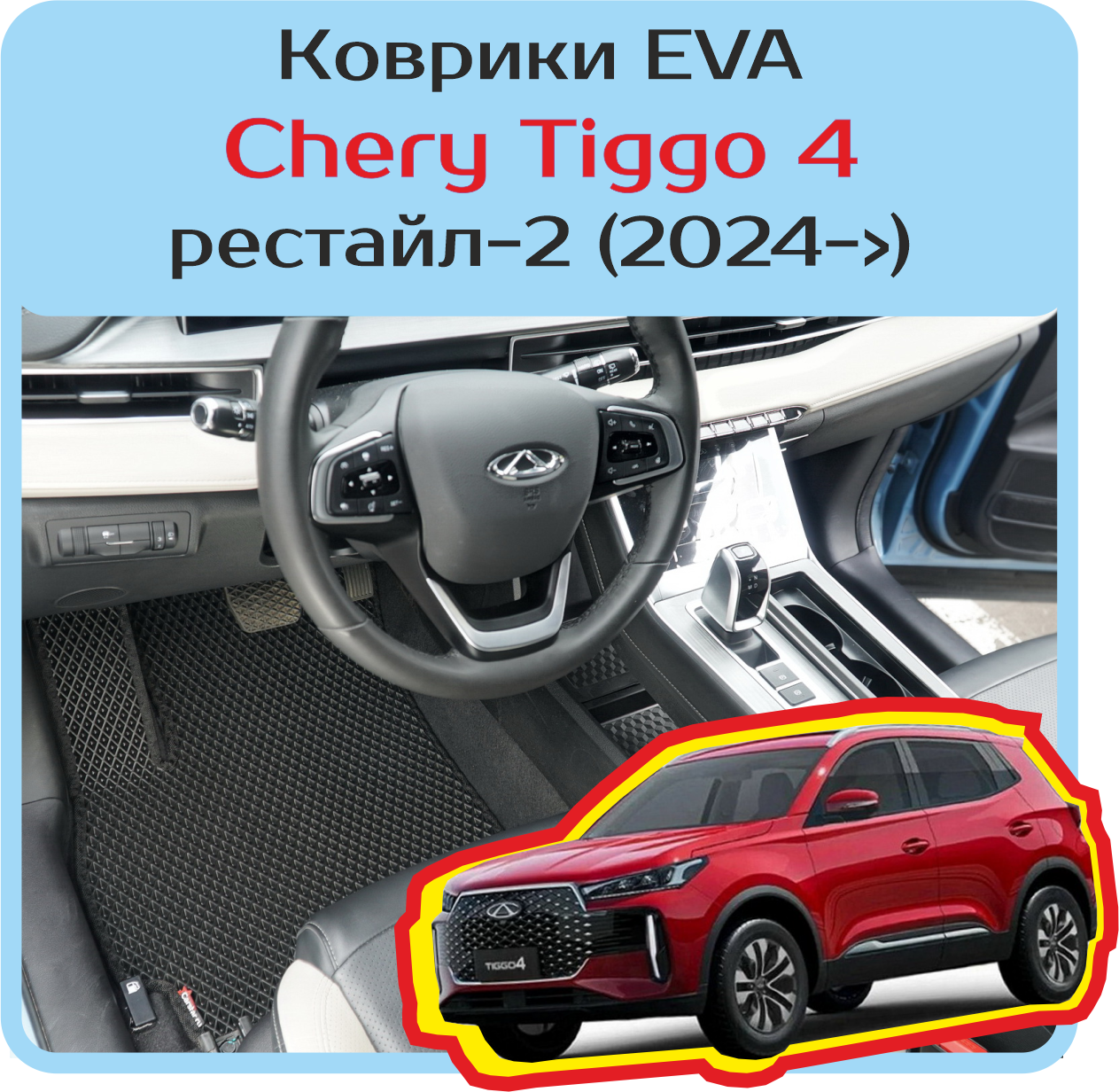 Отзывы на Автомобильные коврики EVA для Chery Tiggo 4 рестайл 2 (2024->), чёрные с чёрным кантом, ячейка - ромб