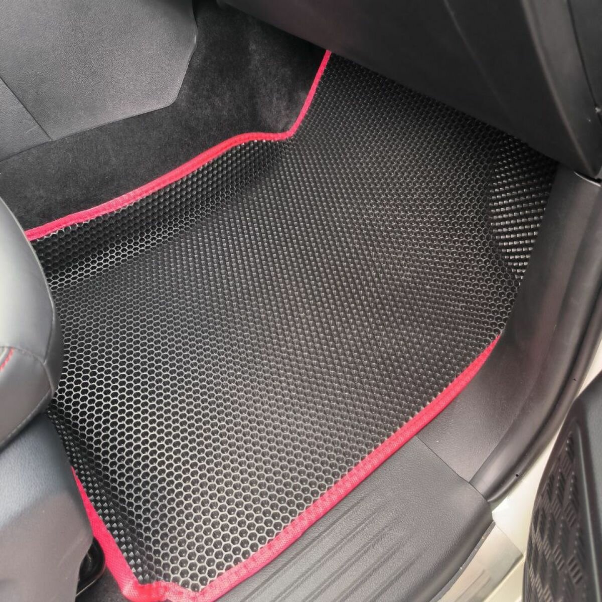 Автомобильные коврики Eva с 3D бортиками для Jac T9 1 поколение (2021-н. в.) Лев. р./черные с красным кантом/EvaLuxeNSK 4 800 ₽