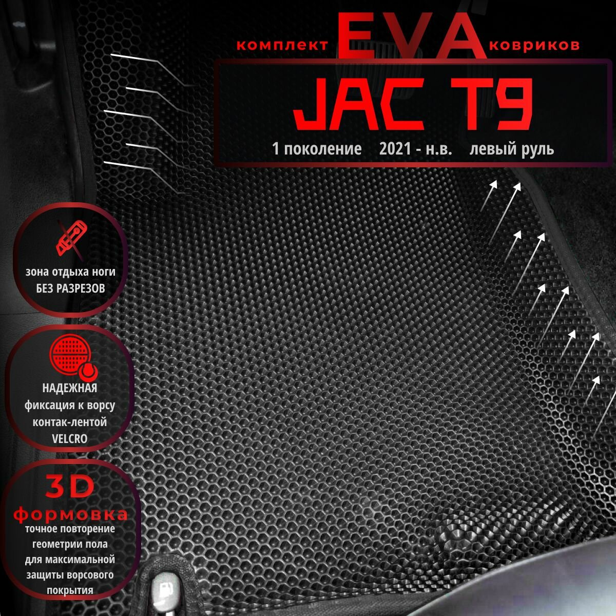 Отзывы на Автомобильные коврики Eva с 3D бортиками для Jac T9 1 поколение (2021-н. в.) Лев. р./черные с черным кантом/EvaLuxeNSK