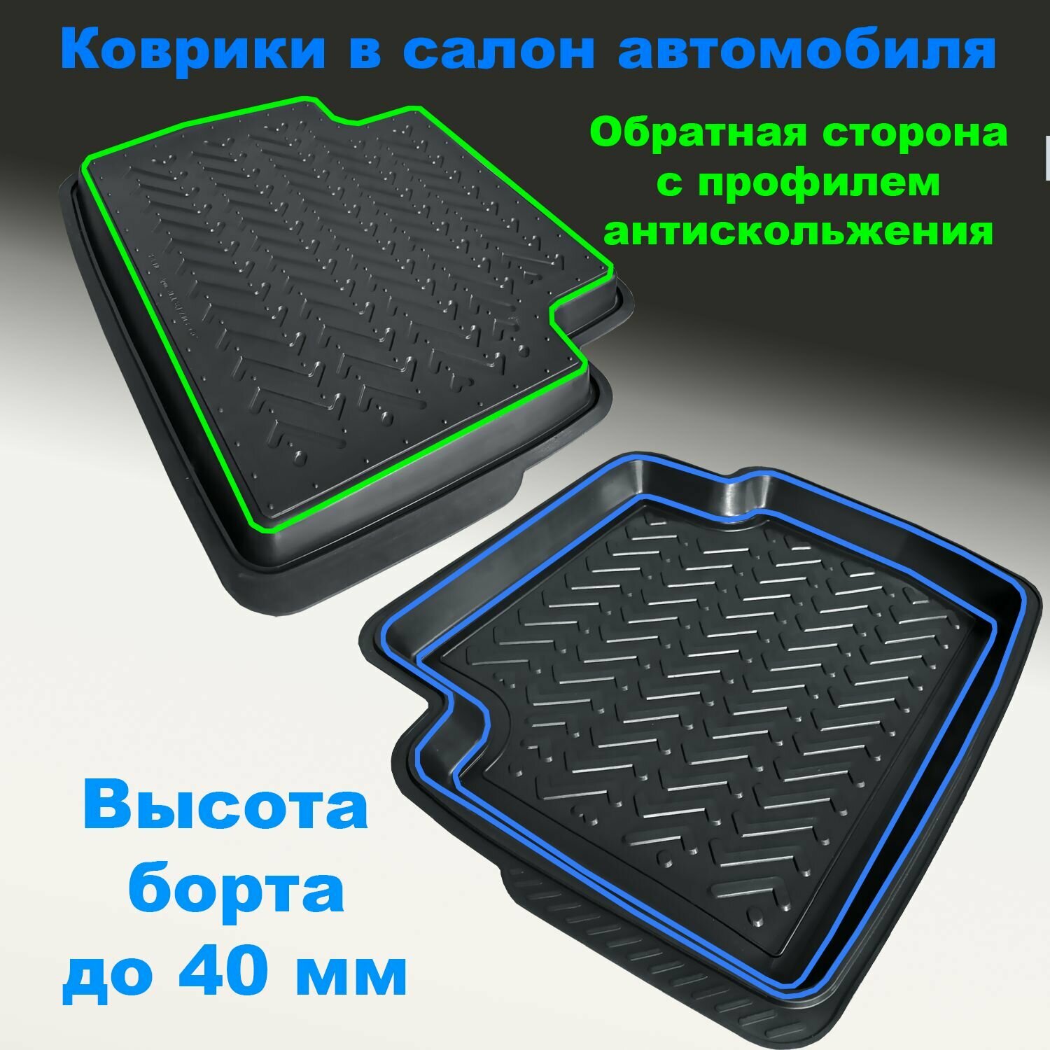 Передние коврики в салон автомобиля универсальные II резина 2 шт