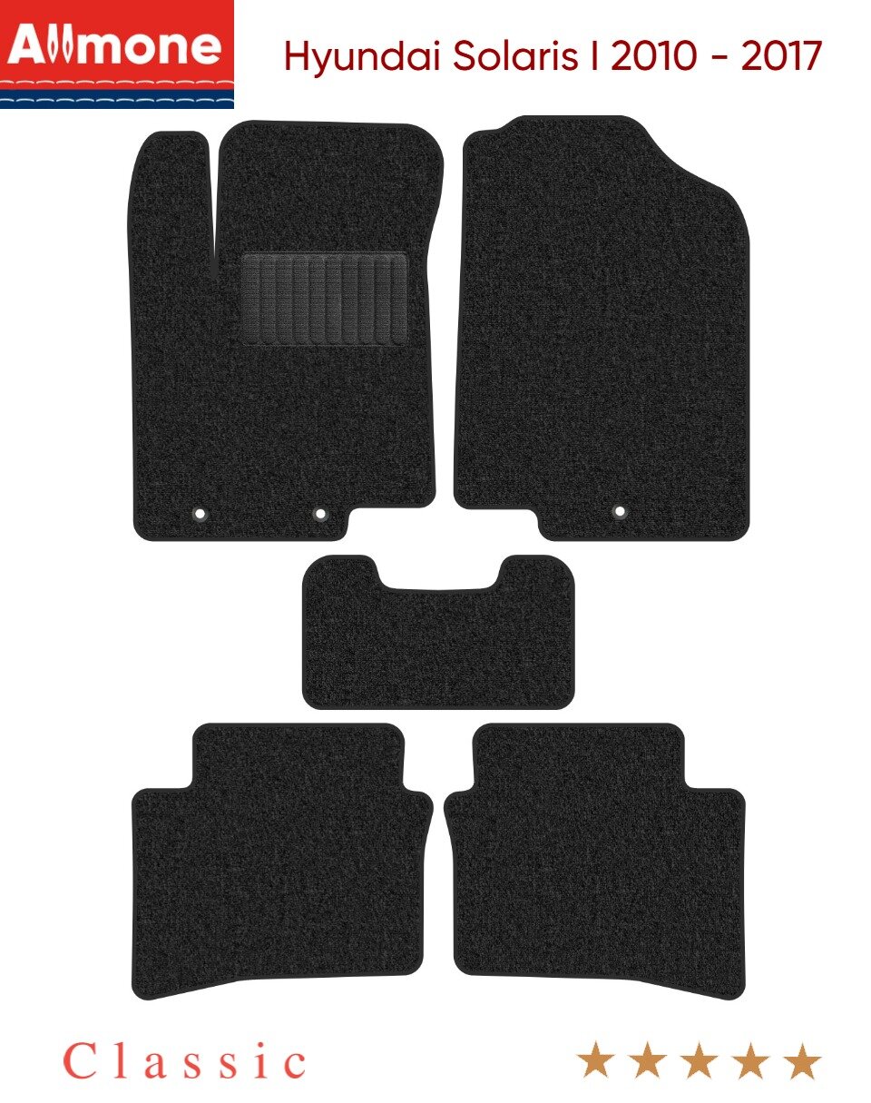 10 цен на Автоковрики Allmone "Классик" для Hyundai Solaris 1 (RB) 2010 - 2017, темно-серые, 5шт. / Хендай Солярис 1 / текстильные / в салон