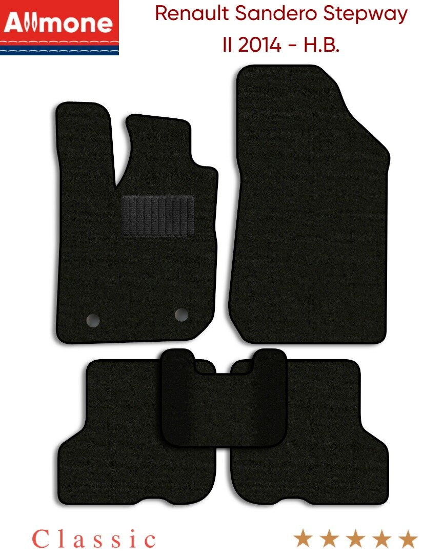 Коврики в салон текстильные Allmone "Классик" для Renault Sandero Stepway 2 2014 - Н. В, черные, 5шт. / Рено Сандеро Степвей 2 информация: