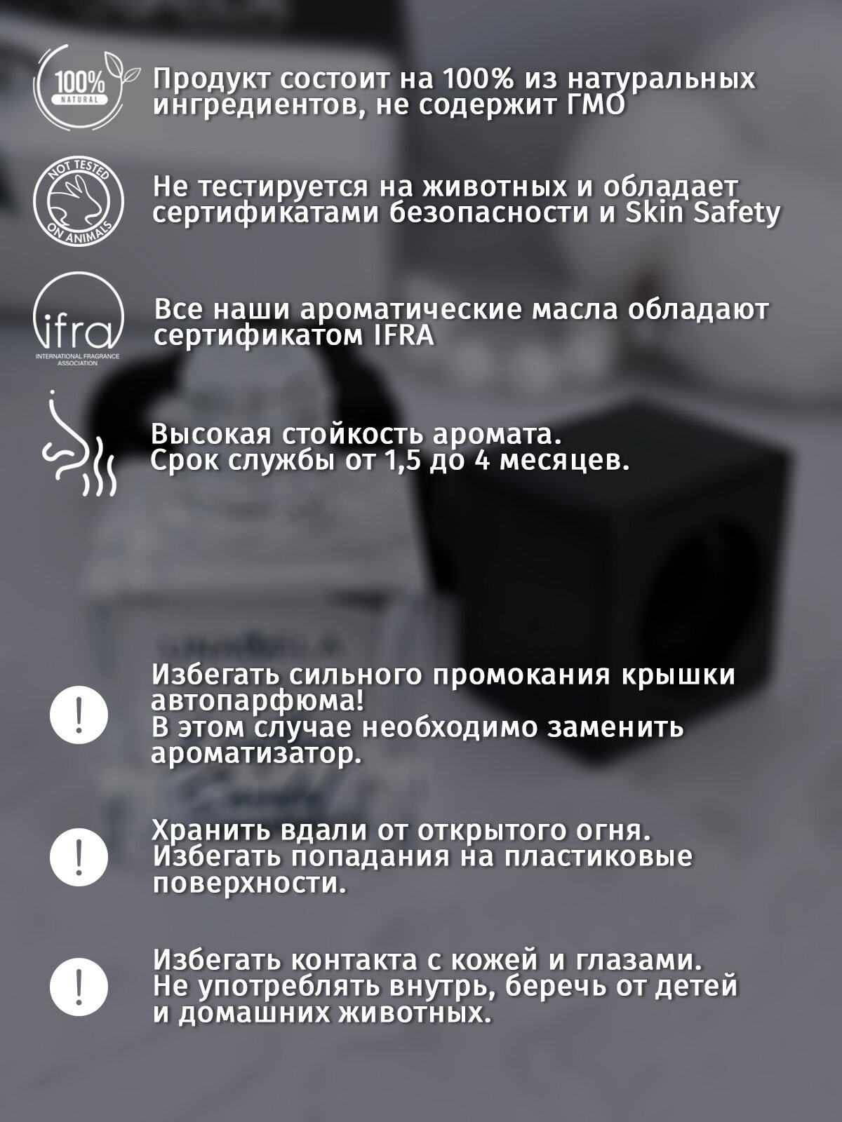 | Дополнительная информация | Комплектация: Ароматизатор в индивидуальной упаковке; Инструкция; Подарочная коробочка. |