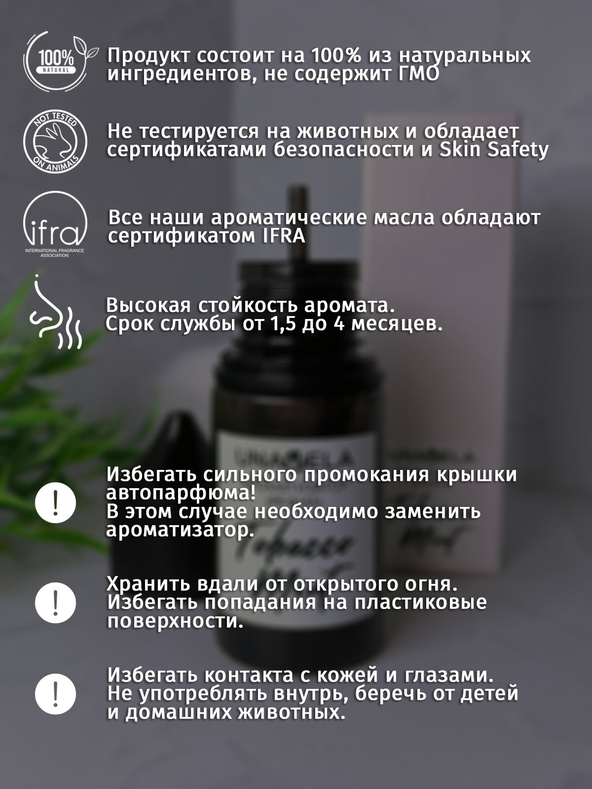 Ароматизатор для авто Unavela "Табак и Мята" 30мл, рефил, для заправки подвесного флакона информация: