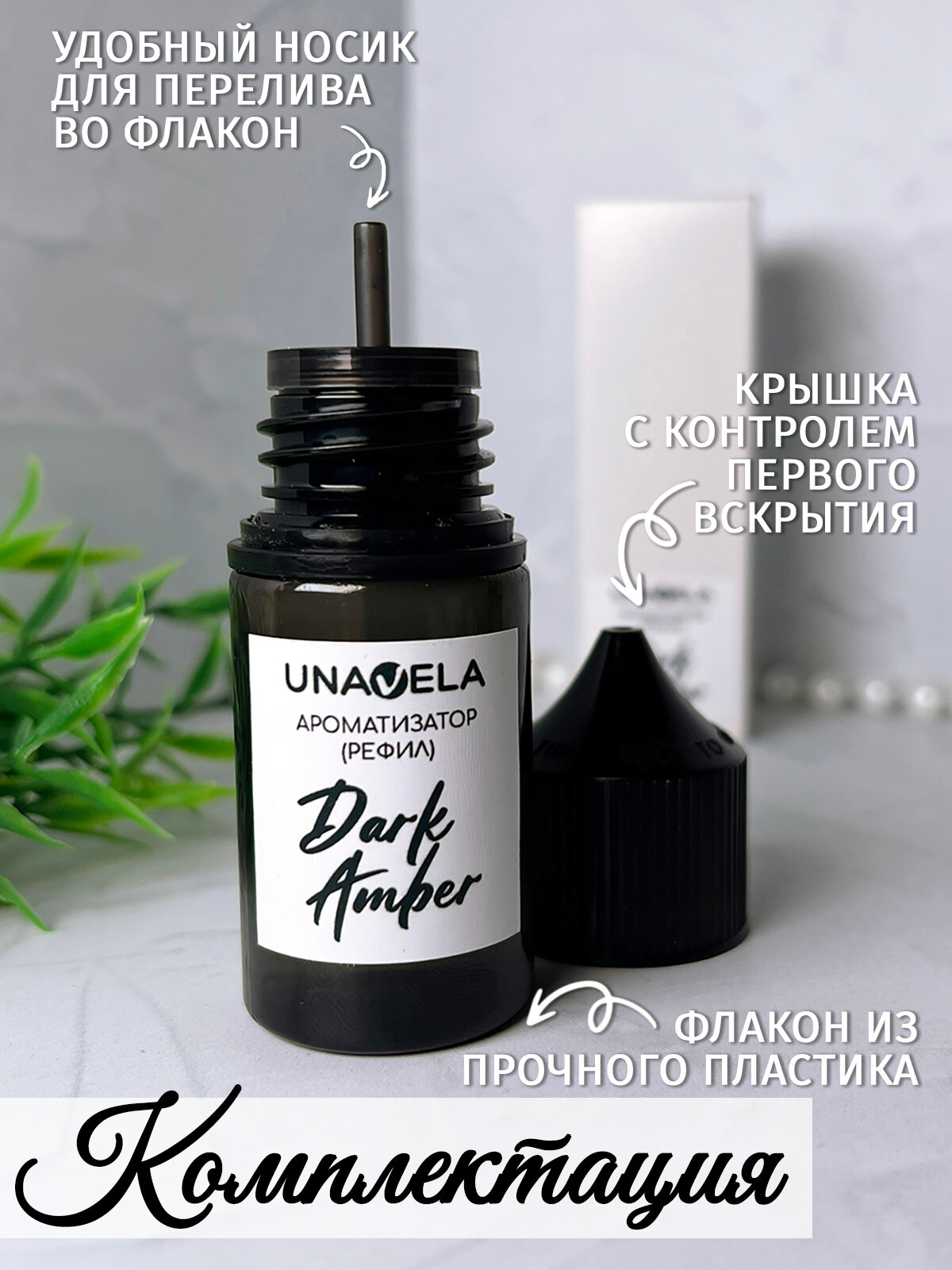Ароматизатор для авто Unavela "Тёмный Янтарь" 30мл, рефил, для заправки подвесного флакона информация: