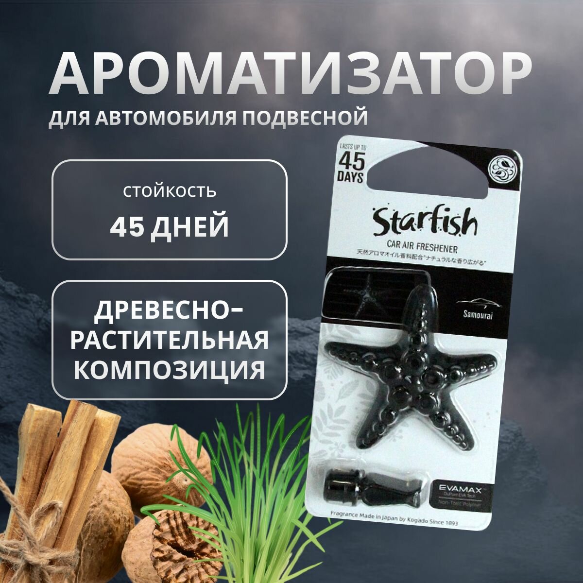 Ароматизатор для автомобиля на кондиционер для дома для шкафа Kogado Starfish Samurai арт. 3238 информация: