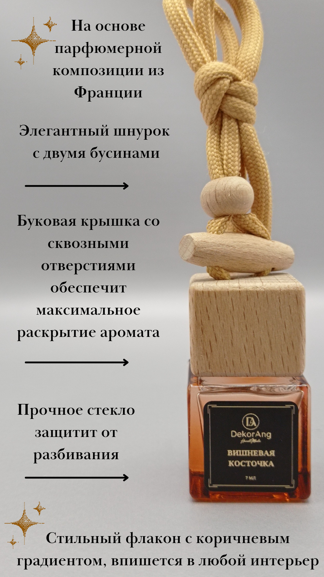 Ароматизатор для автомобиля и дома с ароматом "вишневая косточка", 7,5 мл, автопарфюм информация: