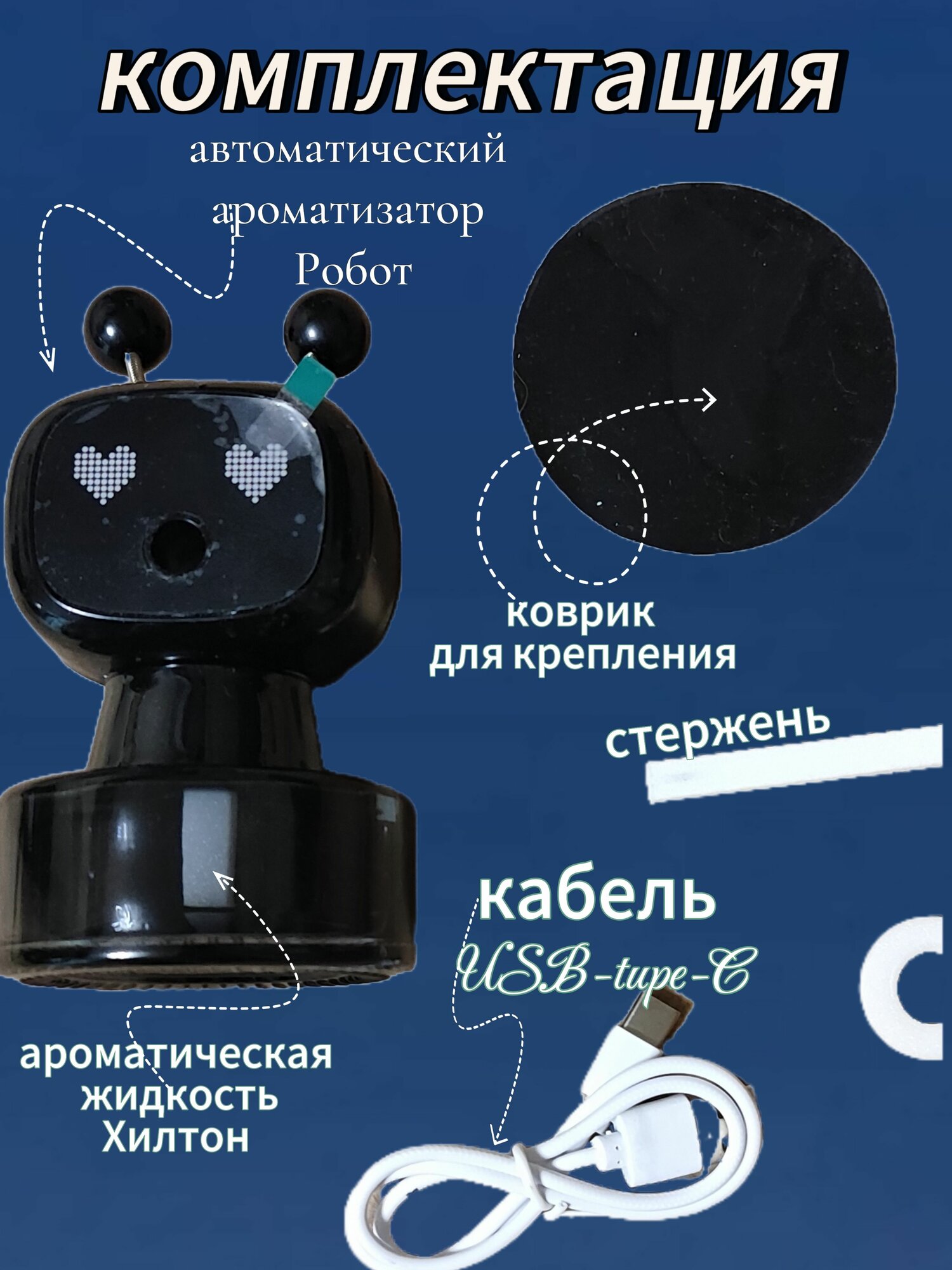 | Комплектация | автоматический ароматизатор Робот с ароматом Хилтон, кабель USB-type-c, картонная коробка |