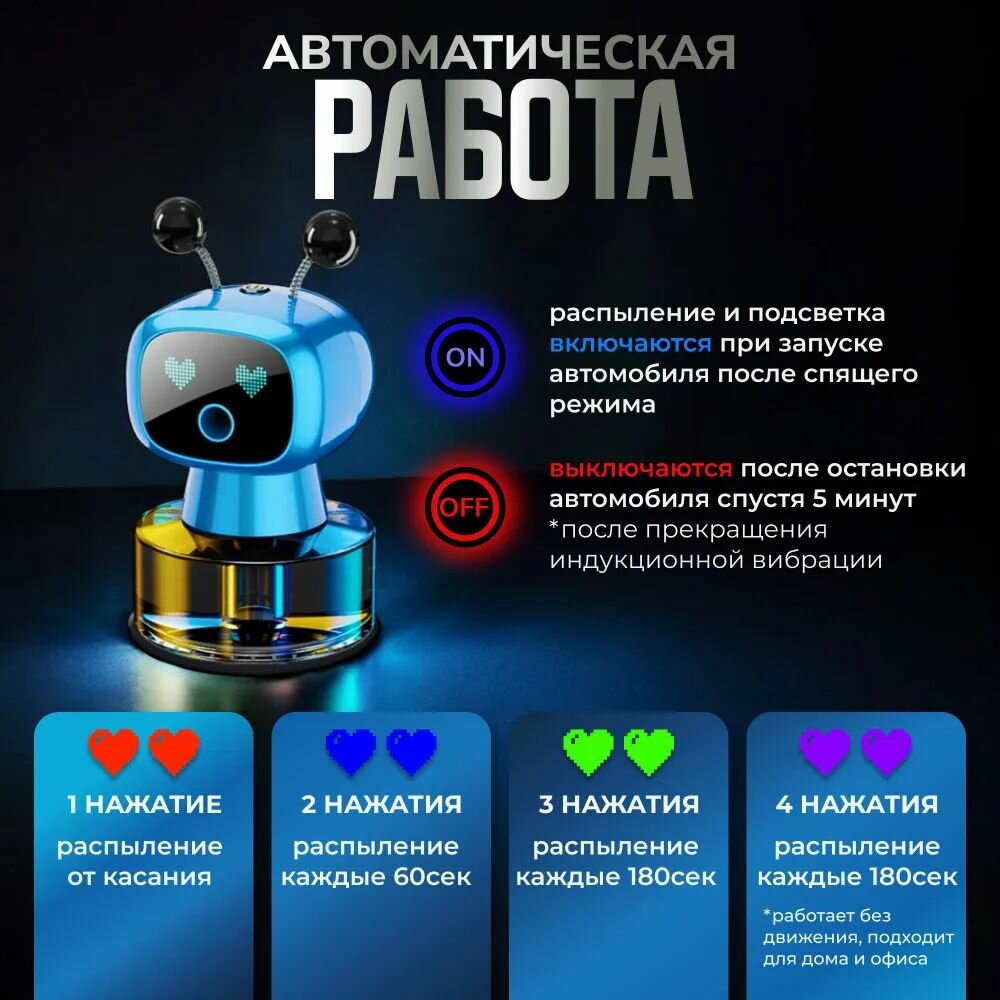 Ароматизатор автомобильный- автоматический, интеллектуальный аромадиффузор Робот(Океан),160 мл. информация: